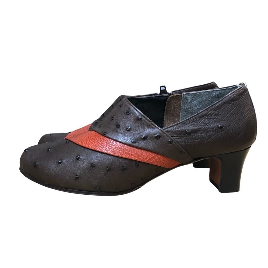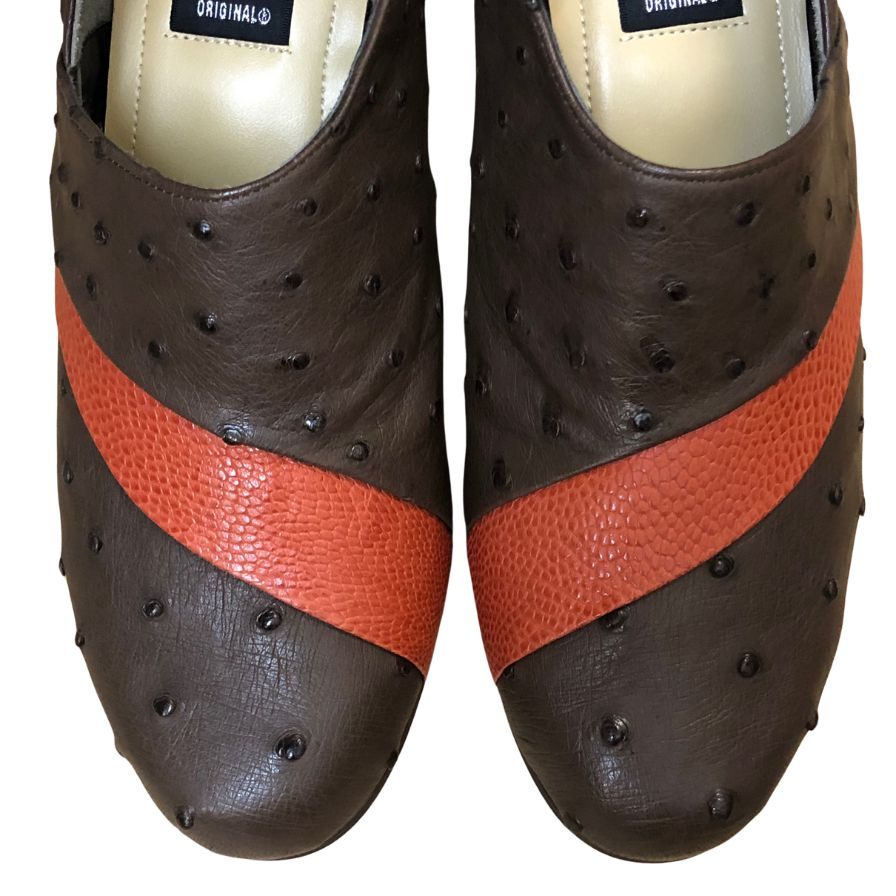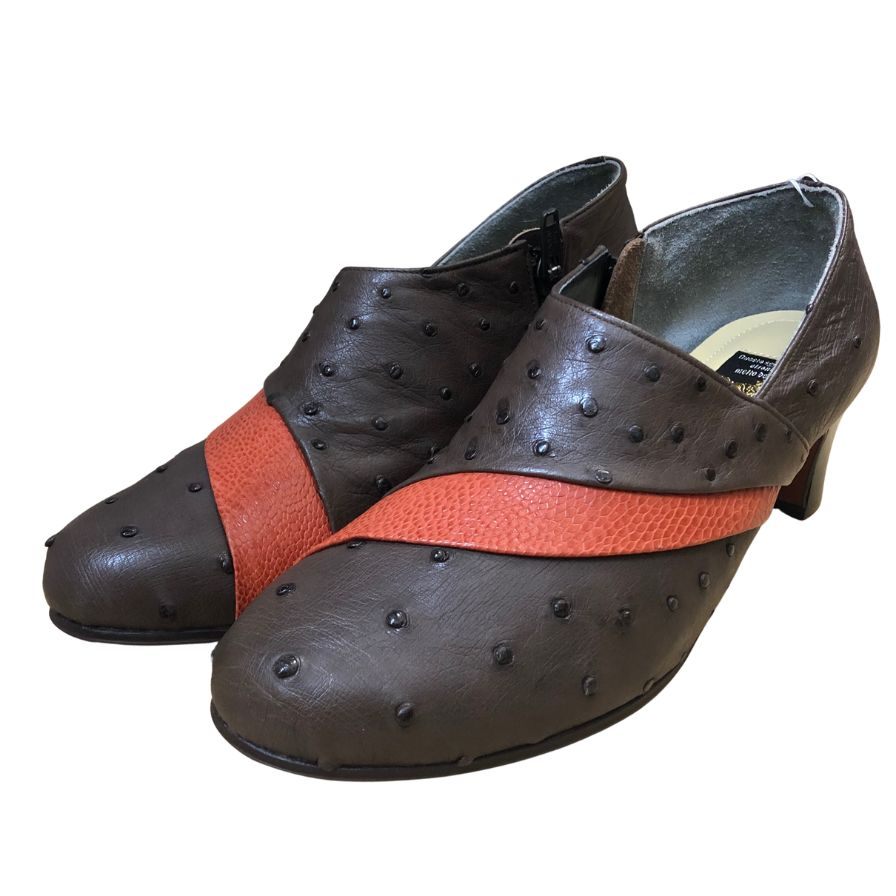 新宿屋 レザーパンプス オーストリッチ 4682-735 ブラウン 24cm レディース shinjukuya 約24.0cm【7F1】