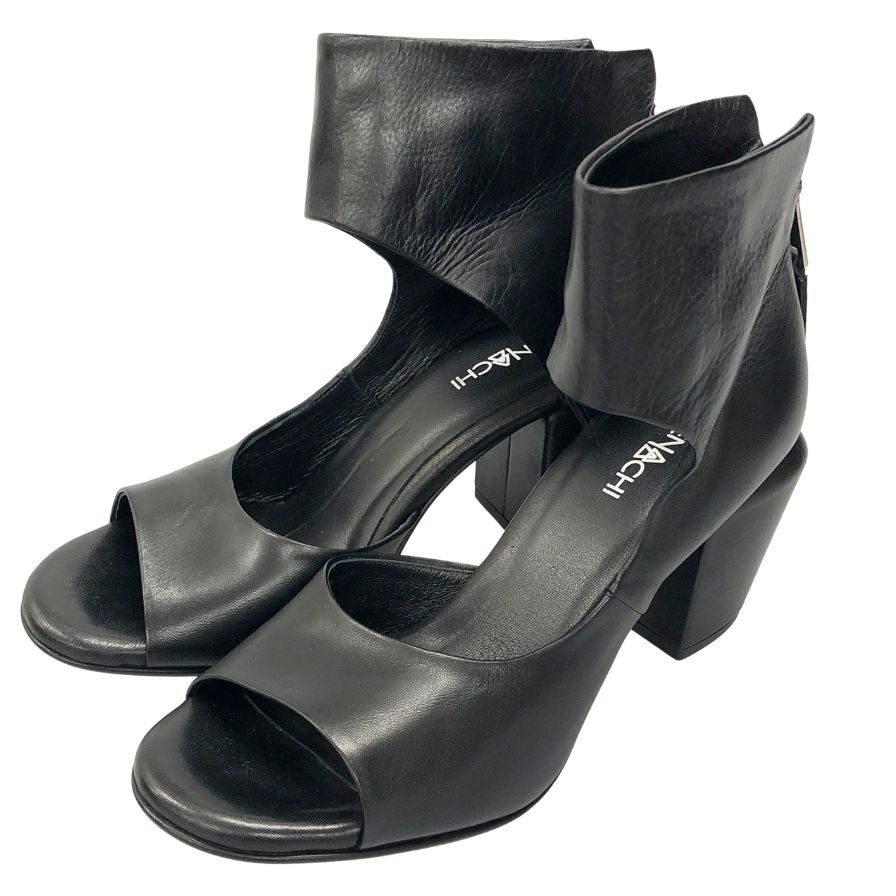エレナ イアチ レザーサンダル ブラック バックジップ レディース サイズ36 ELENA IACHI 約22.5cm【AFC41】