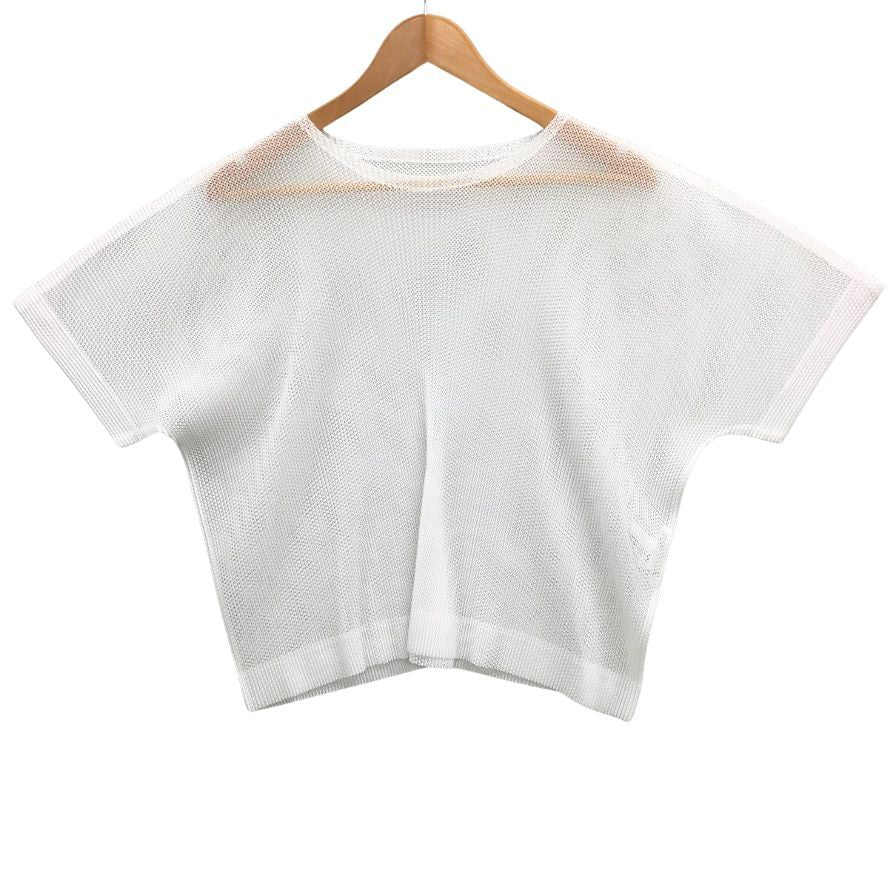 極美品◆プリーツプリーズ イッセイミヤケ メッシュ カットソー レディースサイズ3 ホワイト PLEATS PLEASE ISSEY MIYAKE 【AFB26】