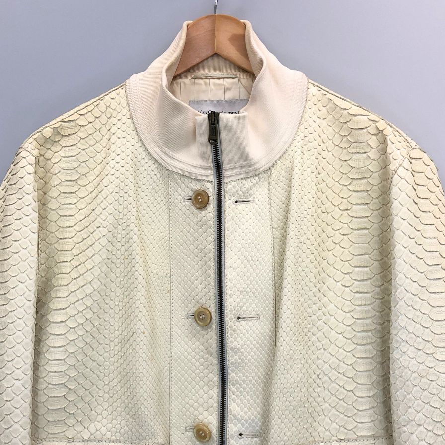 中古◆イヴサンローラン パイソン ボンバーレザーブルゾン メンズ サイズ50 ホワイト YVES SAINT LAURENT 【AFA15】