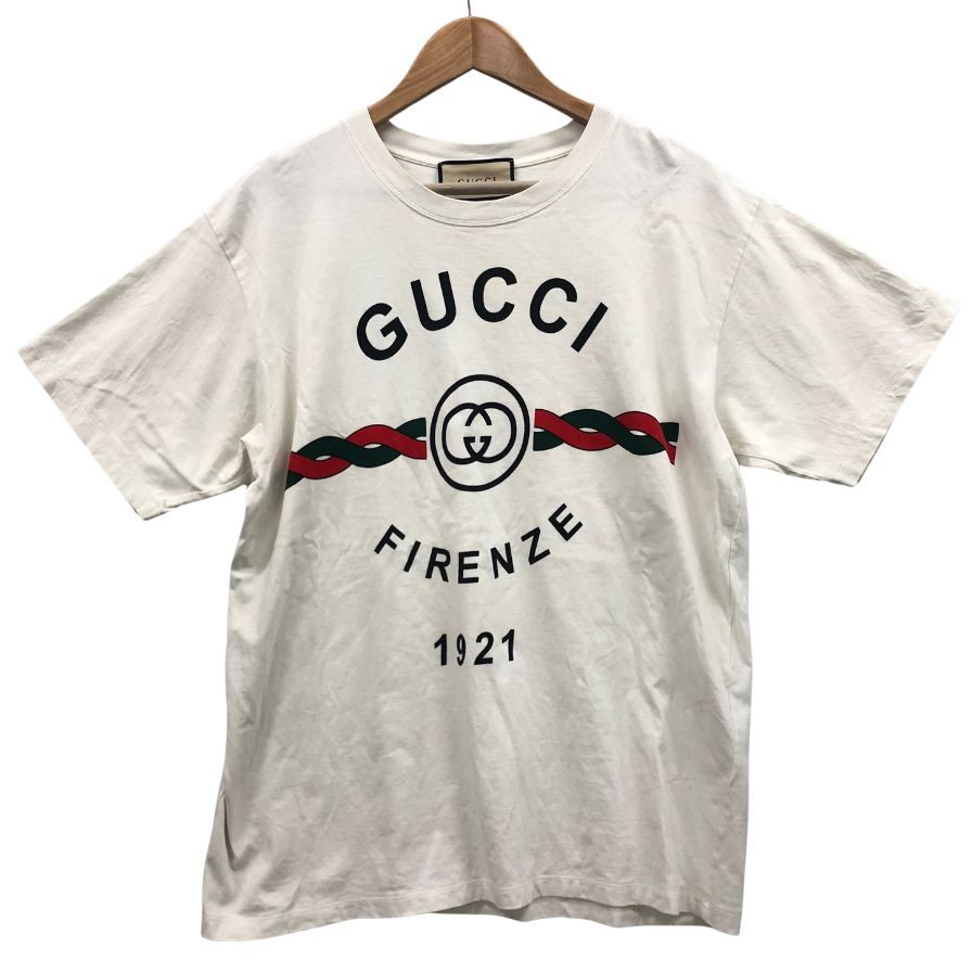 中古◆グッチ 半袖Tシャツ プリント FIRENZE 1921 ホワイト メンズ サイズS GUCCI 【AFB23】