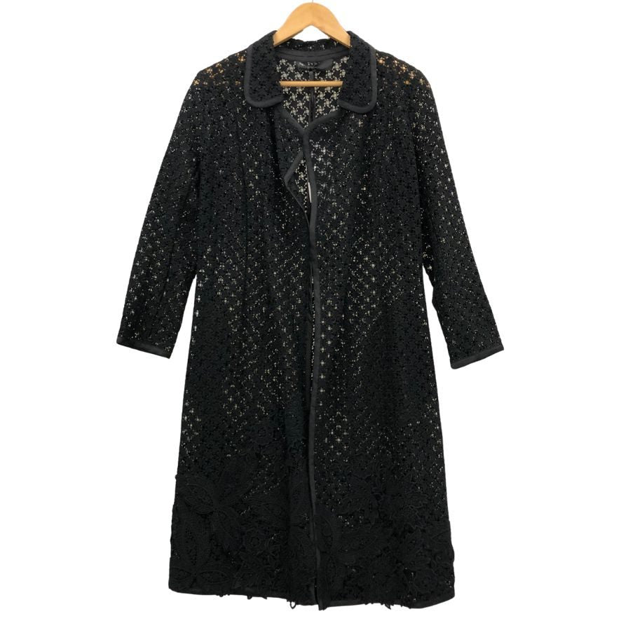 新品同様◆トマソ ステファネリ レースコート クロシェ フラワーパッチ ブラック レディース サイズ40 Tomaso Stefanelli 【AFB28】