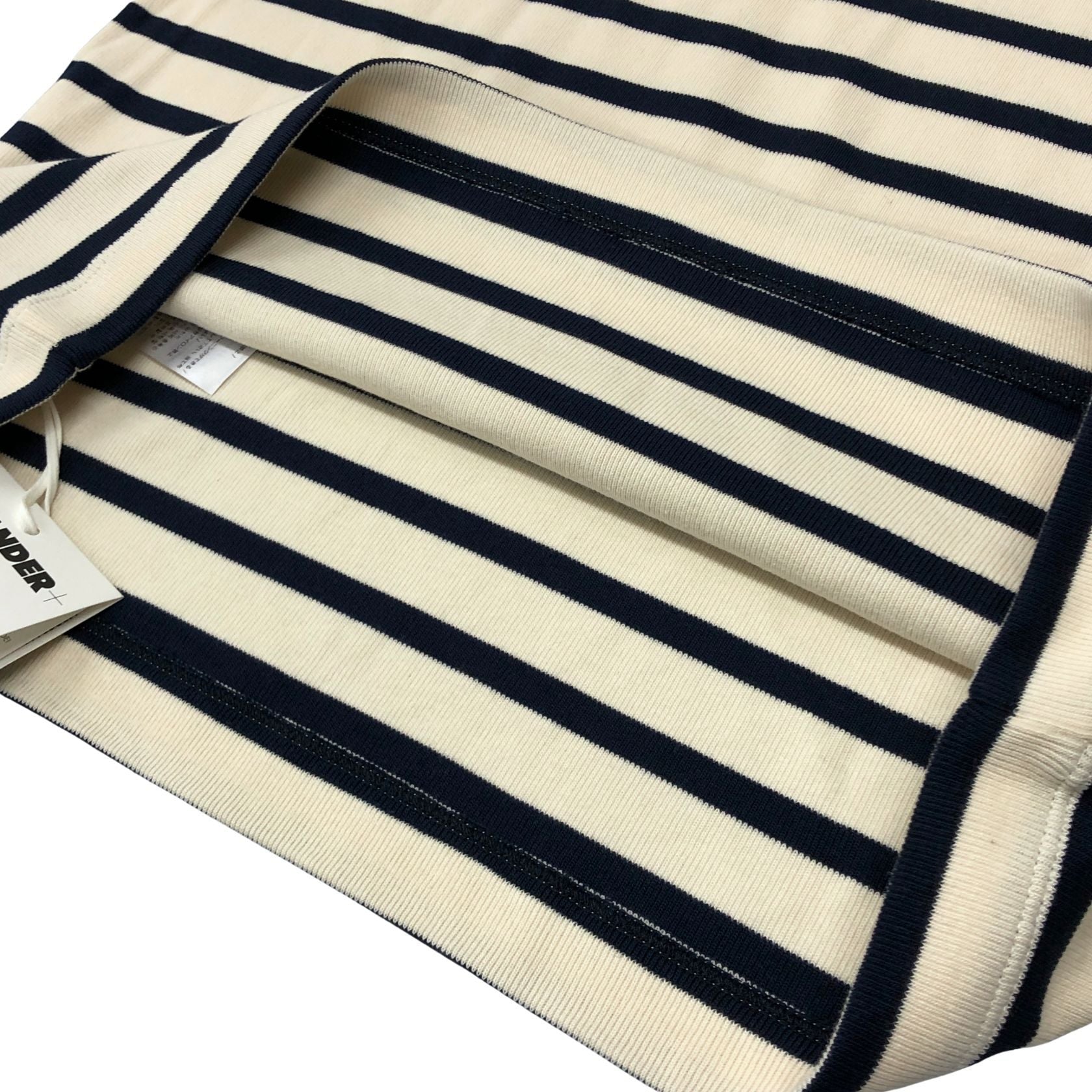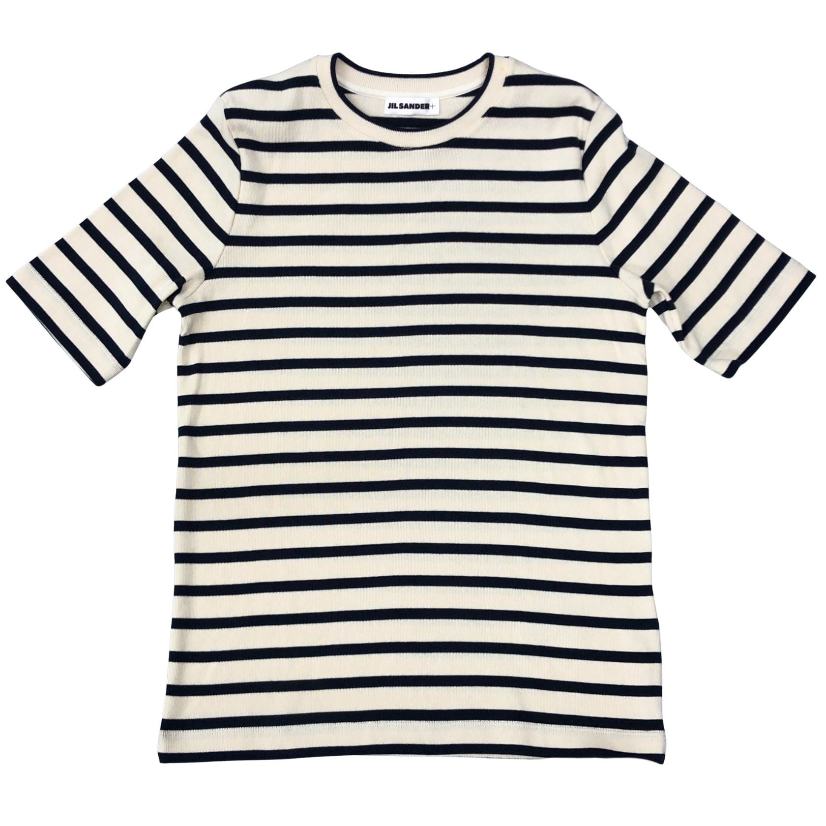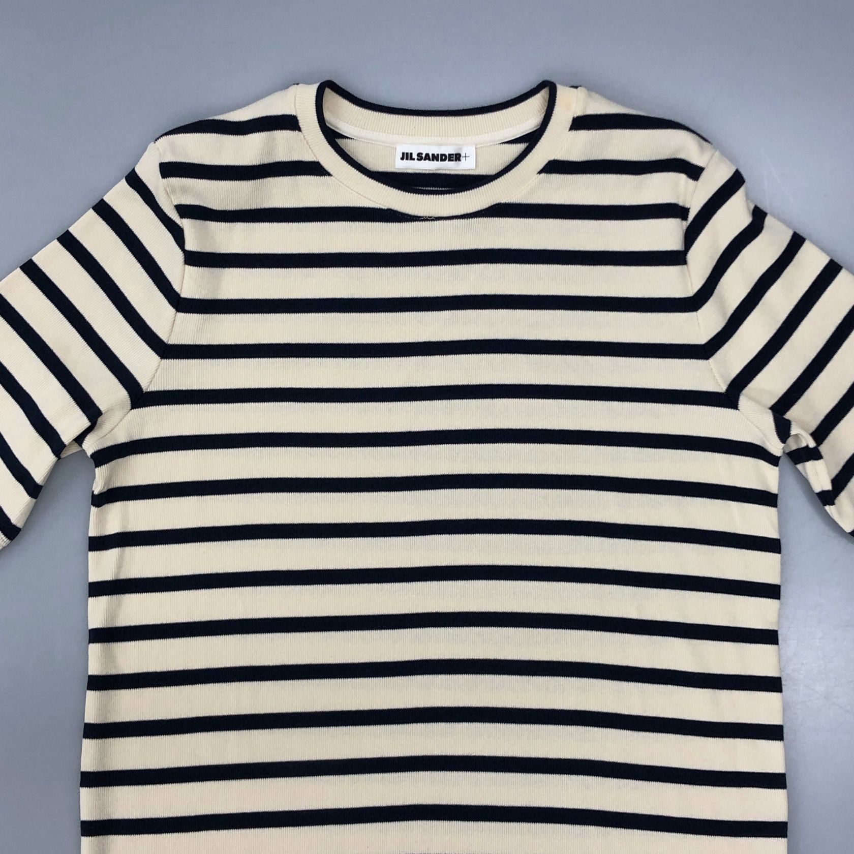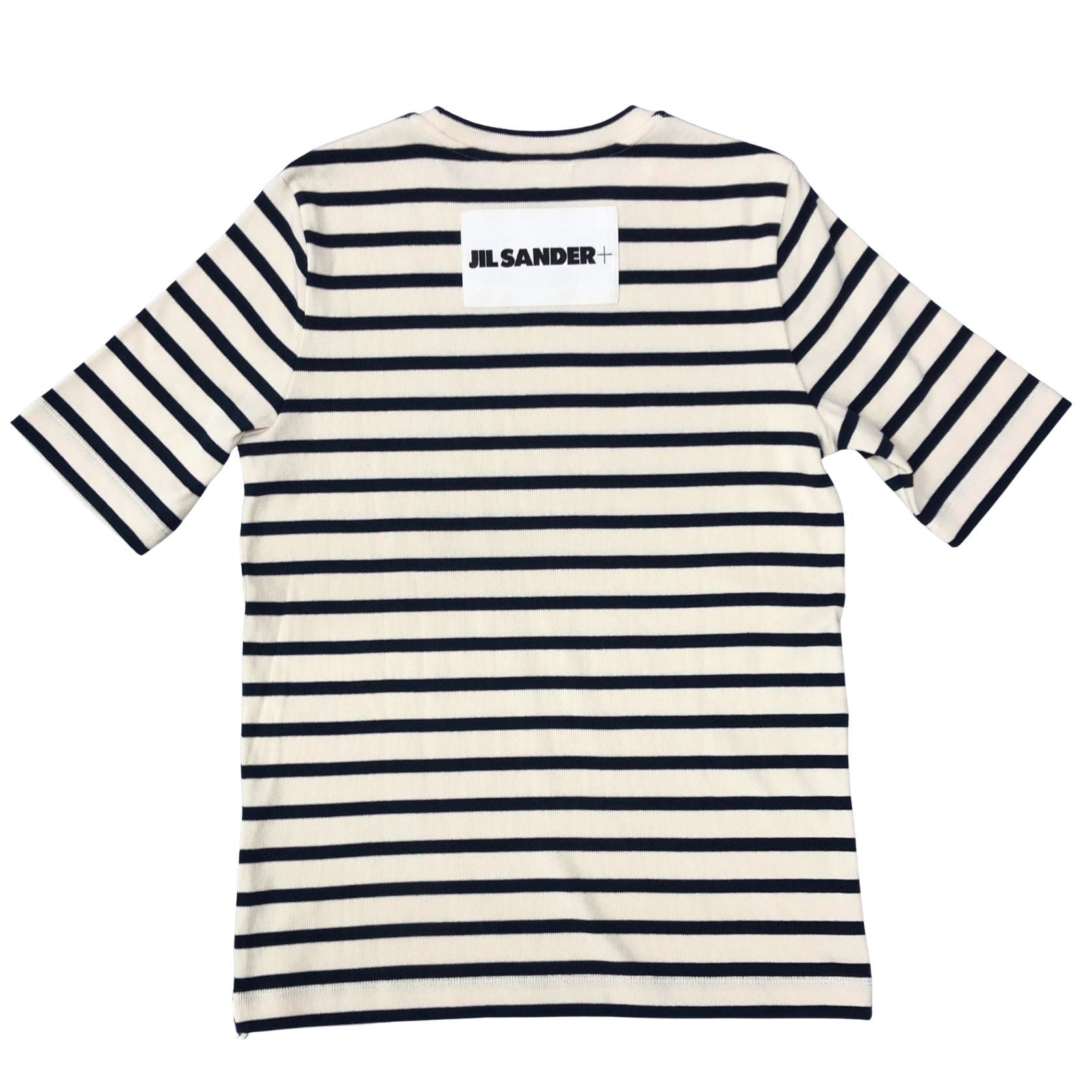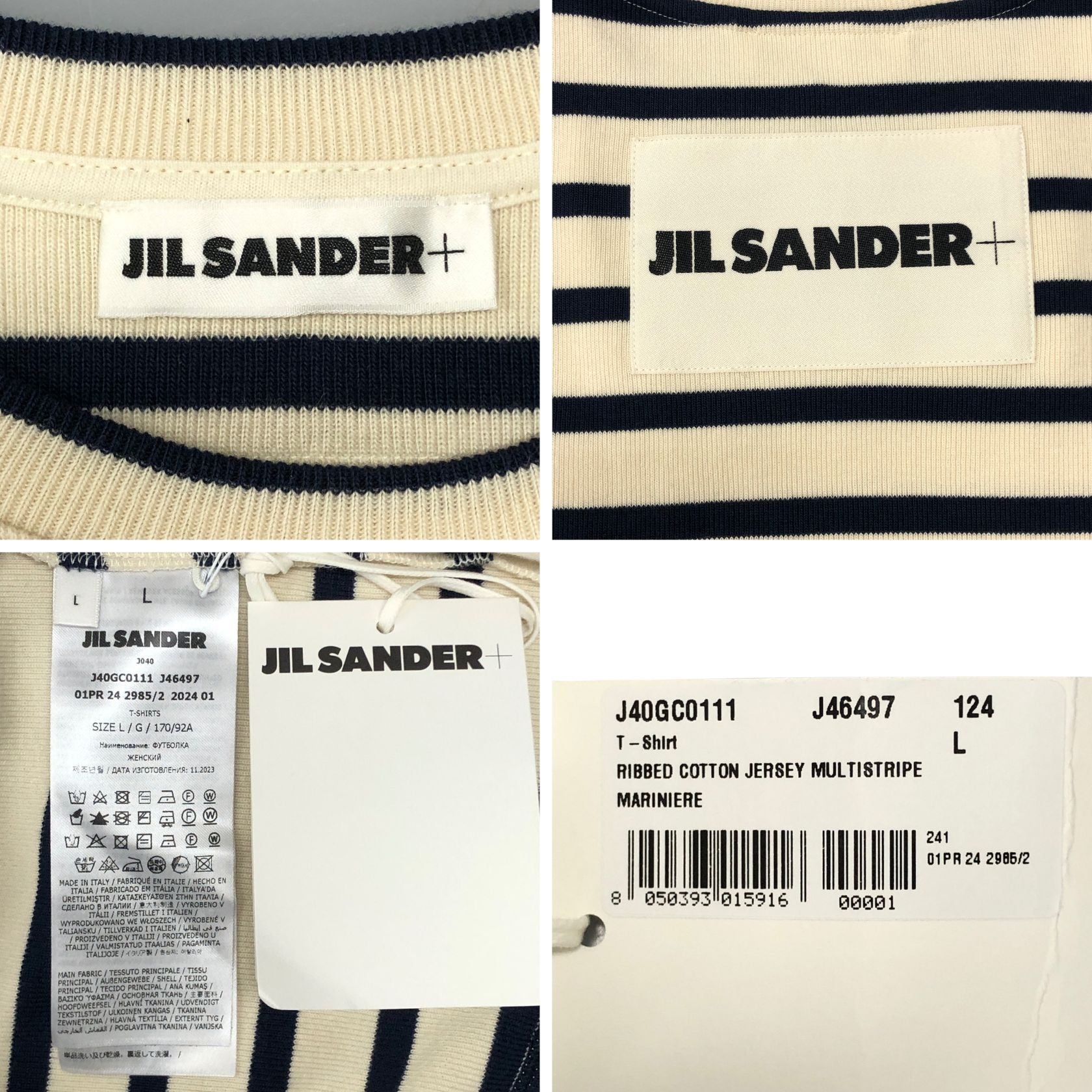 新品同様◆ジルサンダー+24SS Tシャツ リブ コットン ジャージー ボーダー バックパッチ レディース サイズL ホワイト系 JIL SANDER+ 【AFB8】