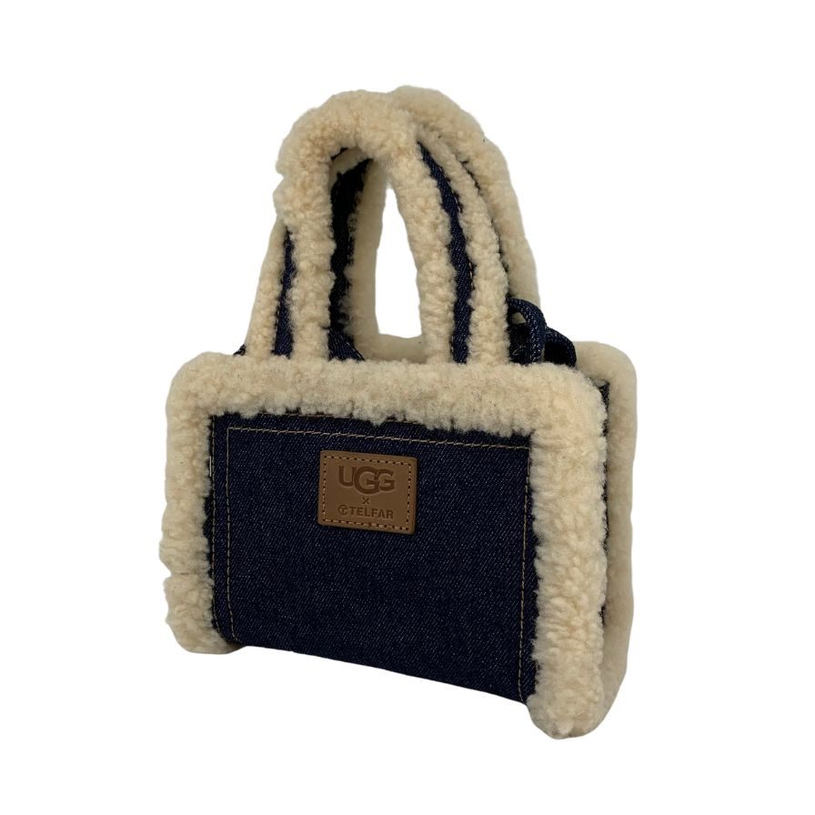 アグ テルファー ハンドバッグ 2WAY ショルダー デニム シープスキン コラボ インディゴ ホワイト系 UGG TELFAR【AFE9】