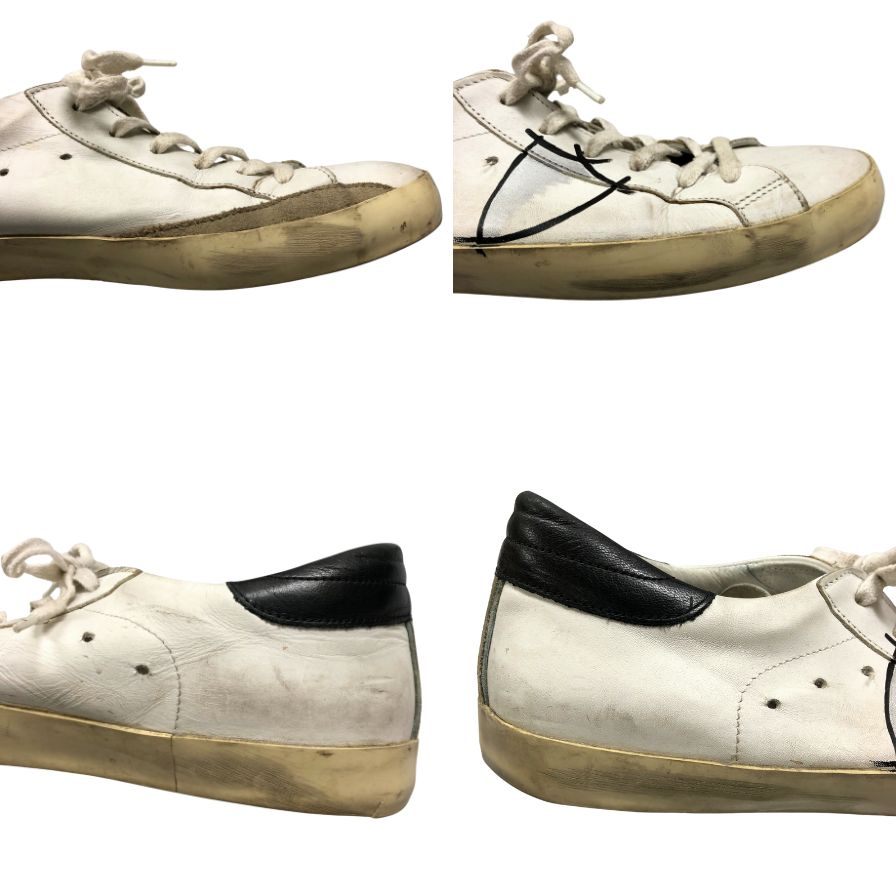 状態詳細 | アウトソール・インソール減り、全体的にスレ・汚れ、履きジワ、内側穴が見られます。(画像参照) |