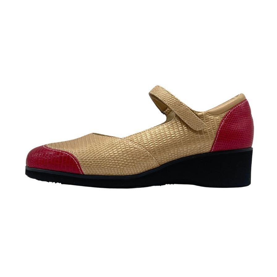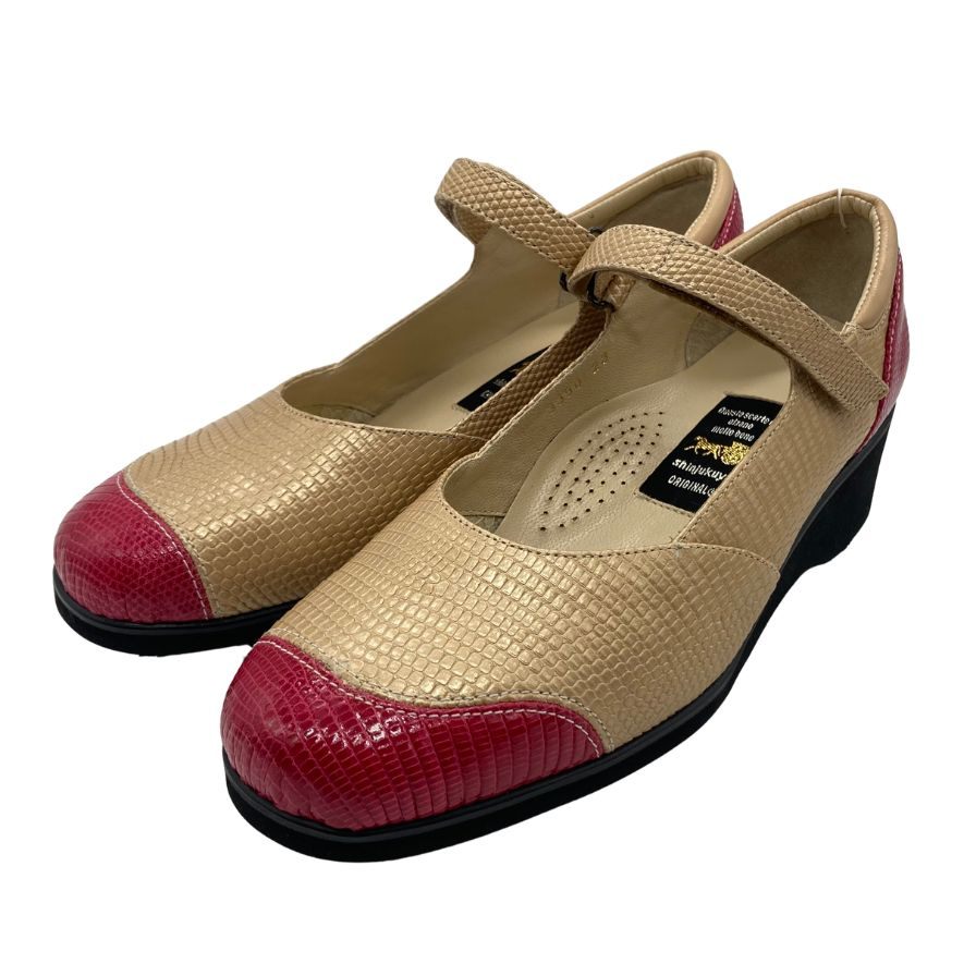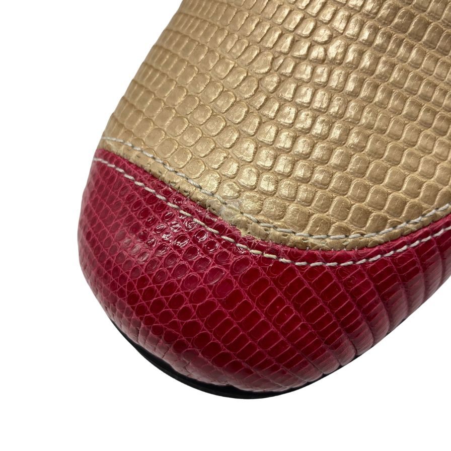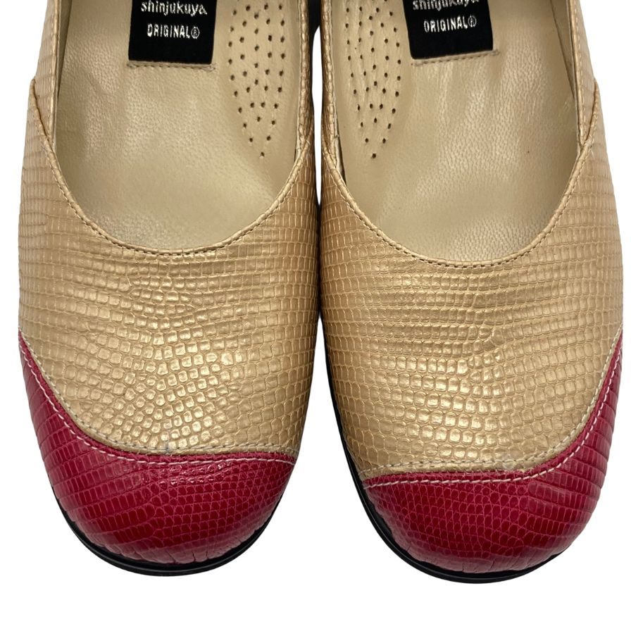 新宿屋 パンプス レザー 3390 トカゲ ゴールド レッド レディース サイズ23 shinjukuya 約23.0cm【7-8】