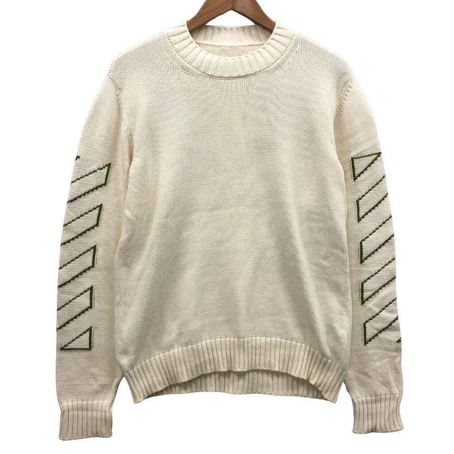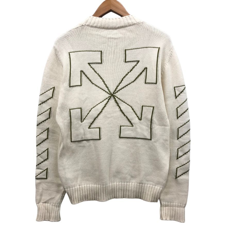美品◆オフホワイト ニット クロスアロー アイボリー メンズ サイズS OFF-WHITE 【AFB40】