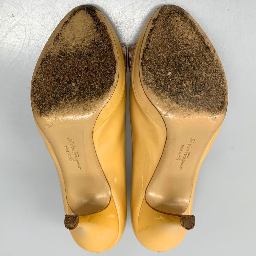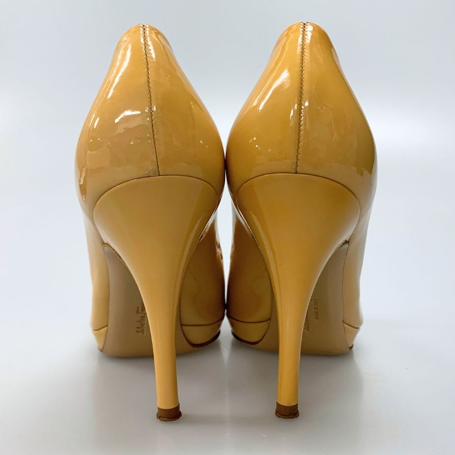 サルヴァトーレ フェラガモ パンプス ヒール ヴァラリボン エナメル レディース サイズ6.5 イエロー系 Salvatore Ferragamo 約25.0cm【AFD3】