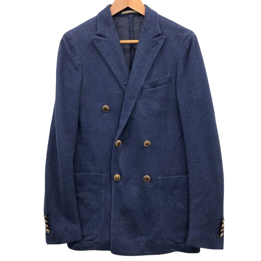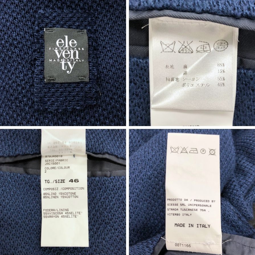 美品◆イレブンティ テーラードジャケット ダブルブレスト 麻 ネイビー メンズ サイズ46 eleventy 【AFB26】