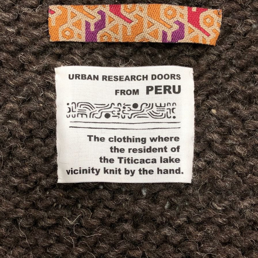 美品◆アーバンリサーチ ドアーズ ハンドニット 木製ボタン ペルー製 メンズ サイズL ブラウン URBAN RESEARCH DOORS 【AFB26】