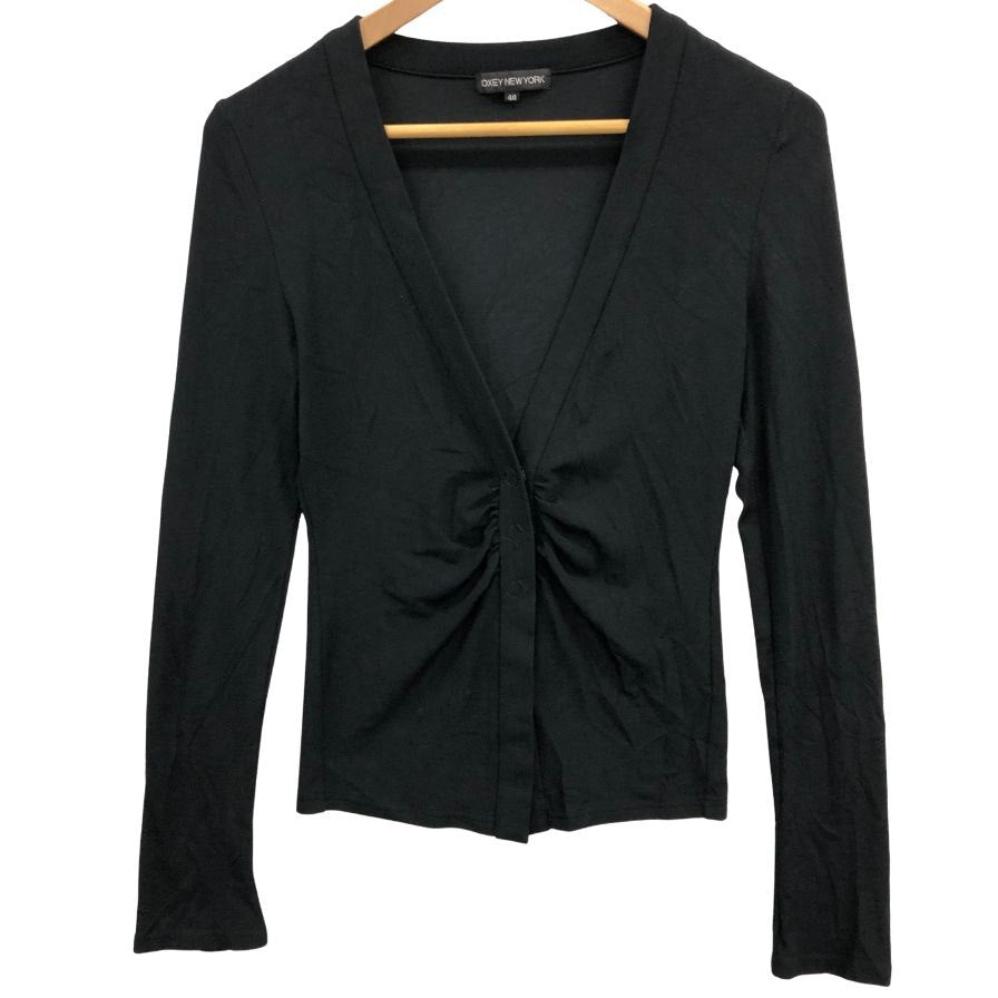 美品◆フォクシー ニューヨーク カーディガン プランジングネック 長袖 ストレッチ 40サイズ ブラック 22343-SRJAI58 FOXEY NEW YORK 【AFB8】