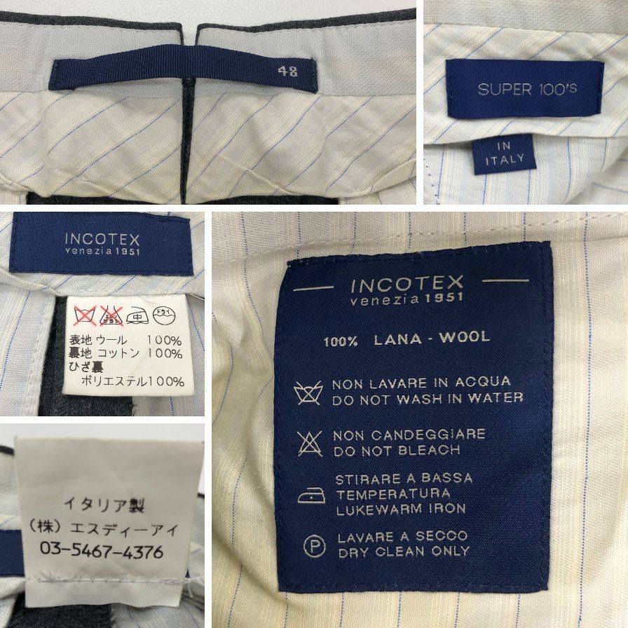 インコテックス スラックス ウール ダークグレー メンズ サイズ48 INCOTEX 【AFB12】