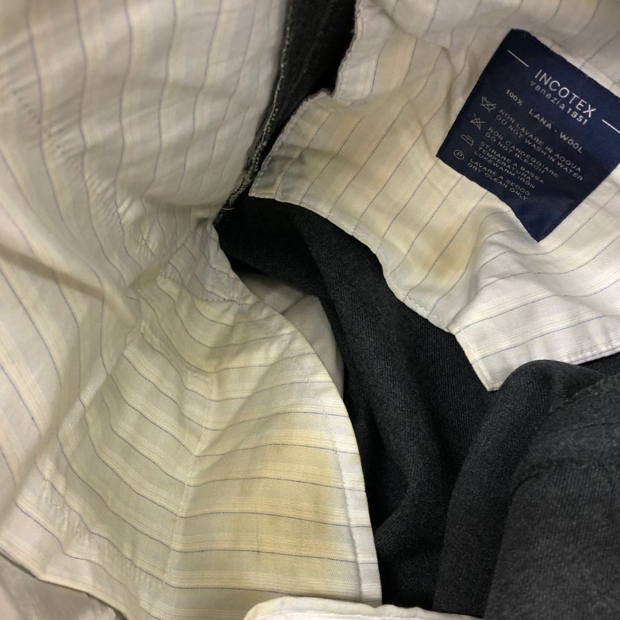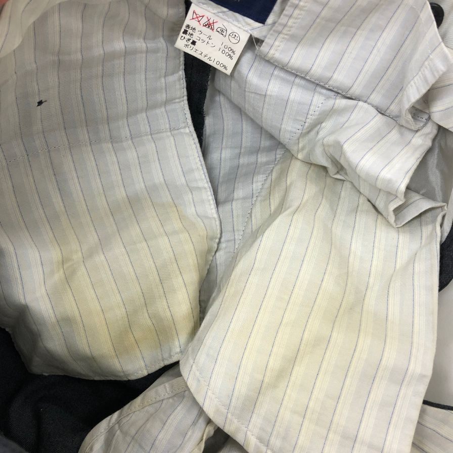 内側腰まわり•ジッパー内側にシミが強く見られます。 |