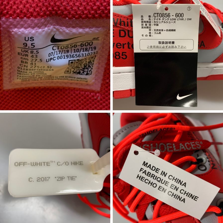 ナイキ×オフホワイト スニーカー ダンク ロウ CT0856-600 レッド サイズ27.5 メンズ NIKE×OFF-WHITE 約27.5cm【AFD4】
