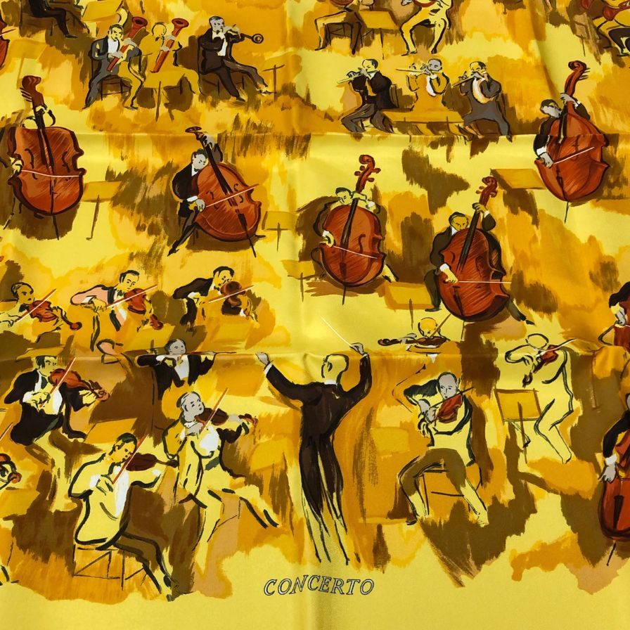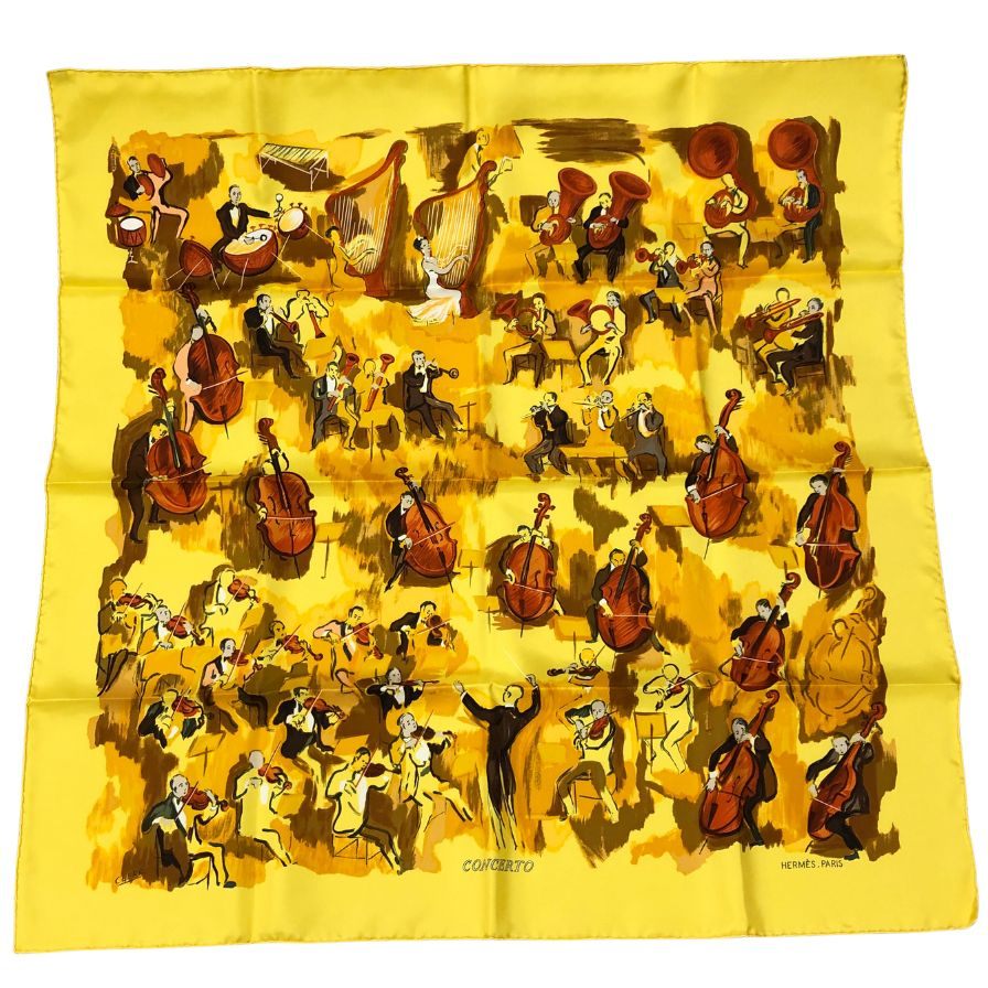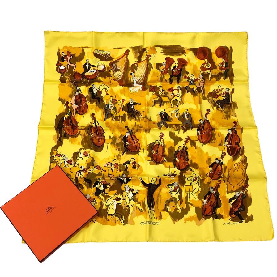 エルメス スカーフ カレ90 コンチェルト CONCERTO イエロー シルク レディース HERMES【AFI20】