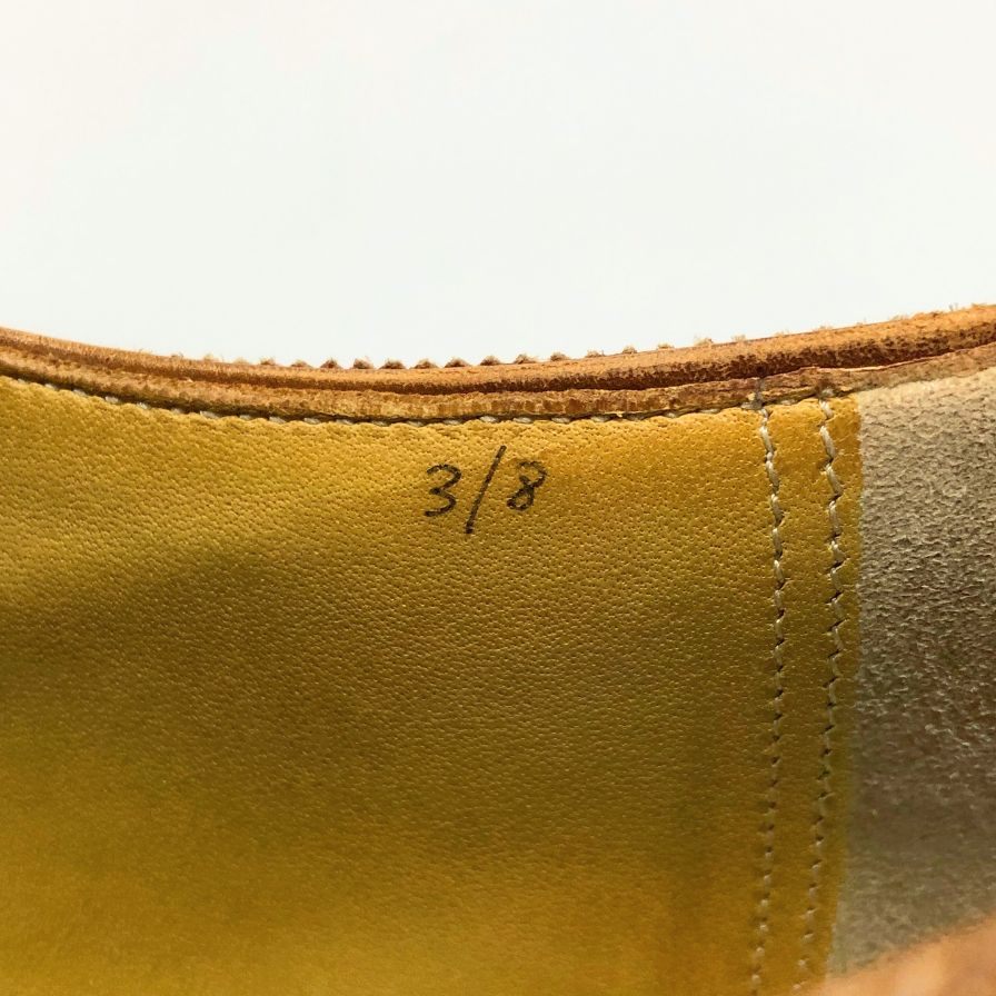 商品詳細 | 表記サイズ【3/8】(約cm) アウトソール縦:29.5cm アウトソールウィズ:10.5cm 全高:11.5cm ヒール:2.5cm ※採寸に関しまして1~2cm程誤差が出てしまう場合もございます。予めご了承くださいませ。 |