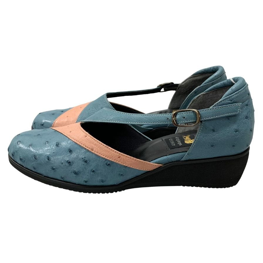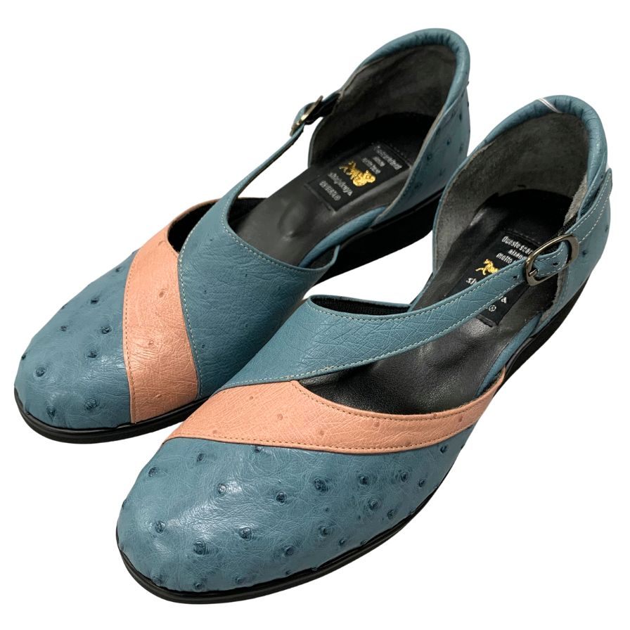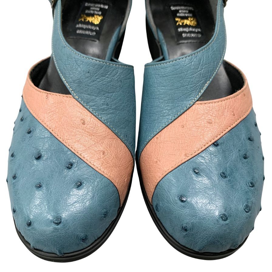 新宿屋 レザーパンプス オーストリッチ 4740-075 ピンク×ブルー 23.0㎝ レディース shinjukuya 約23.0cm【7-16】