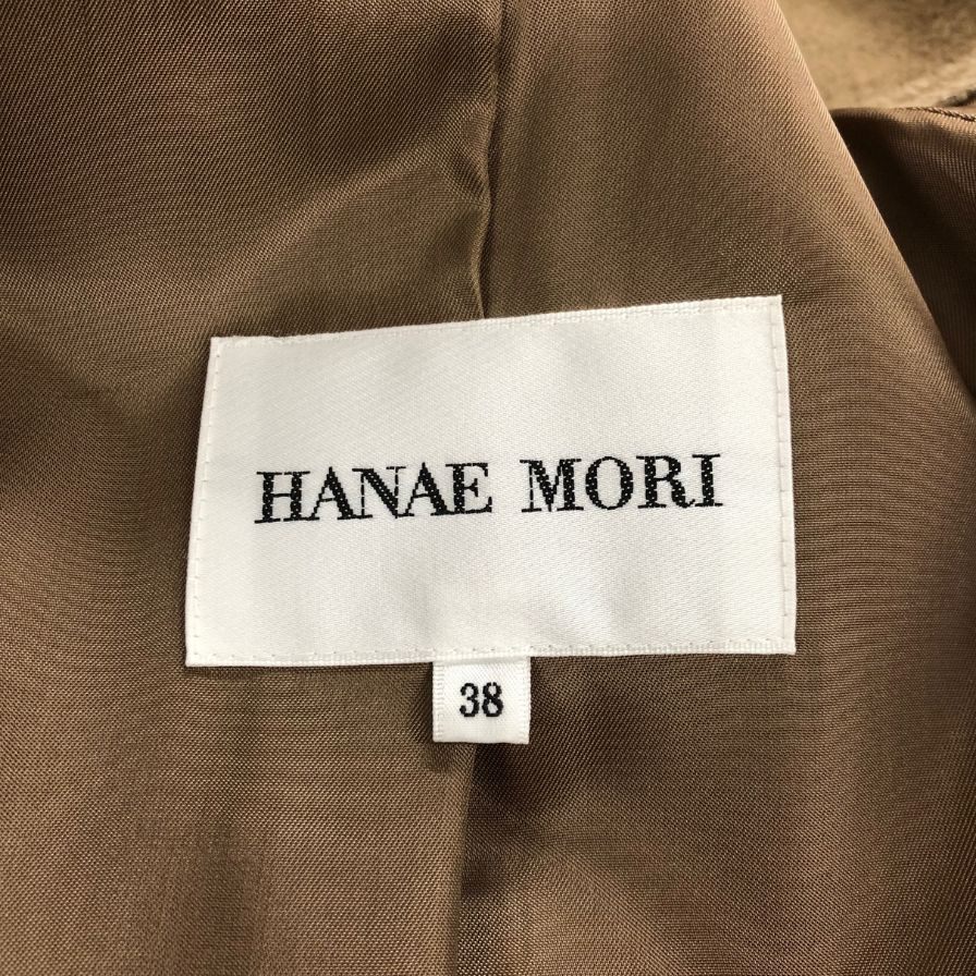 美品◆ハナエ モリ レディース スタンドカラー ボタンコート カシミア100% キャメル サイズ38 HANAE MORI 【AFA4】