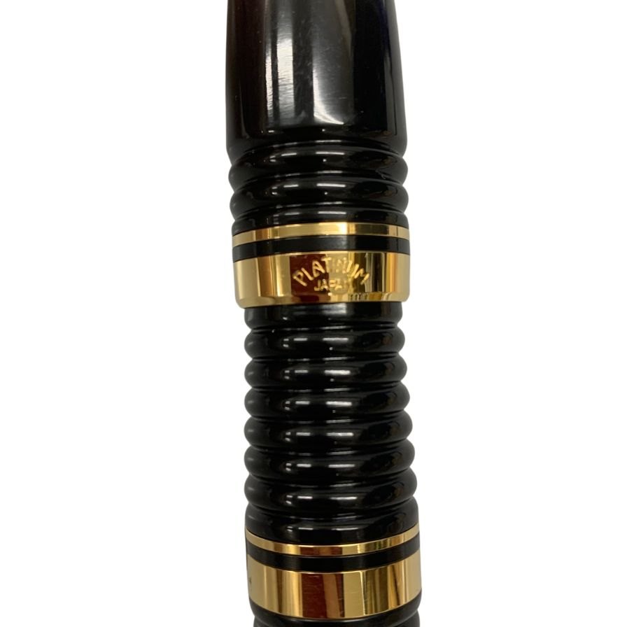 美品◆プラチナ 万年筆 ギャザード グラマ ペン先 medium ブラック×ゴールド PLATINUM【AFI18】