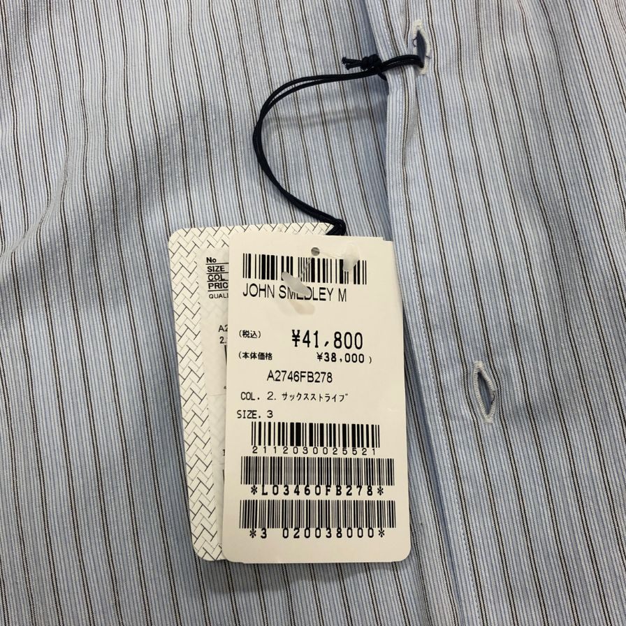 ブランド | ジョンスメドレー シャツ ノーカラー バンドカラー 長袖 ストライプ メンズ ブルー系 サイズM JOHN SMEDLEY |