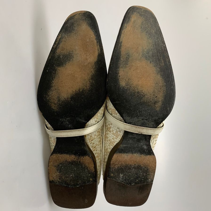 状態詳細 | 全体シミ汚れ、金具部分スレくもり、ソール使用感、トゥソール削れが見られます。 |