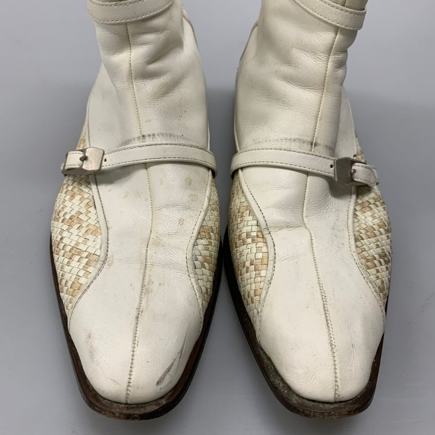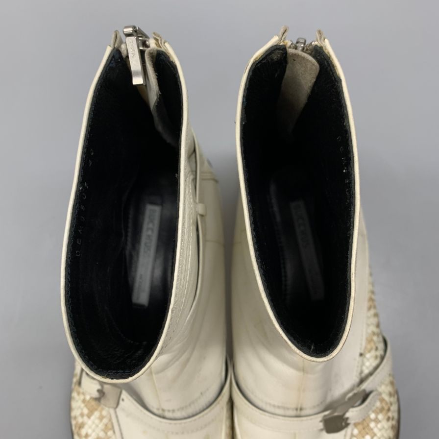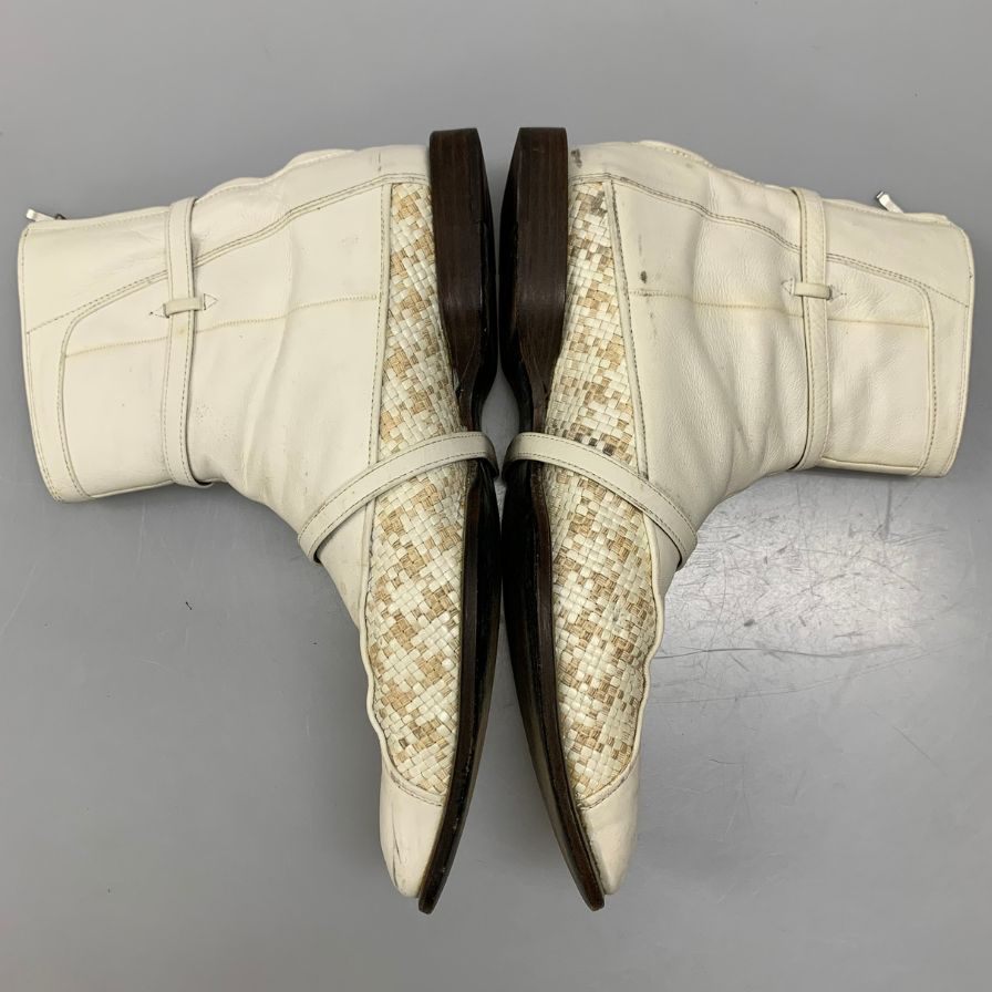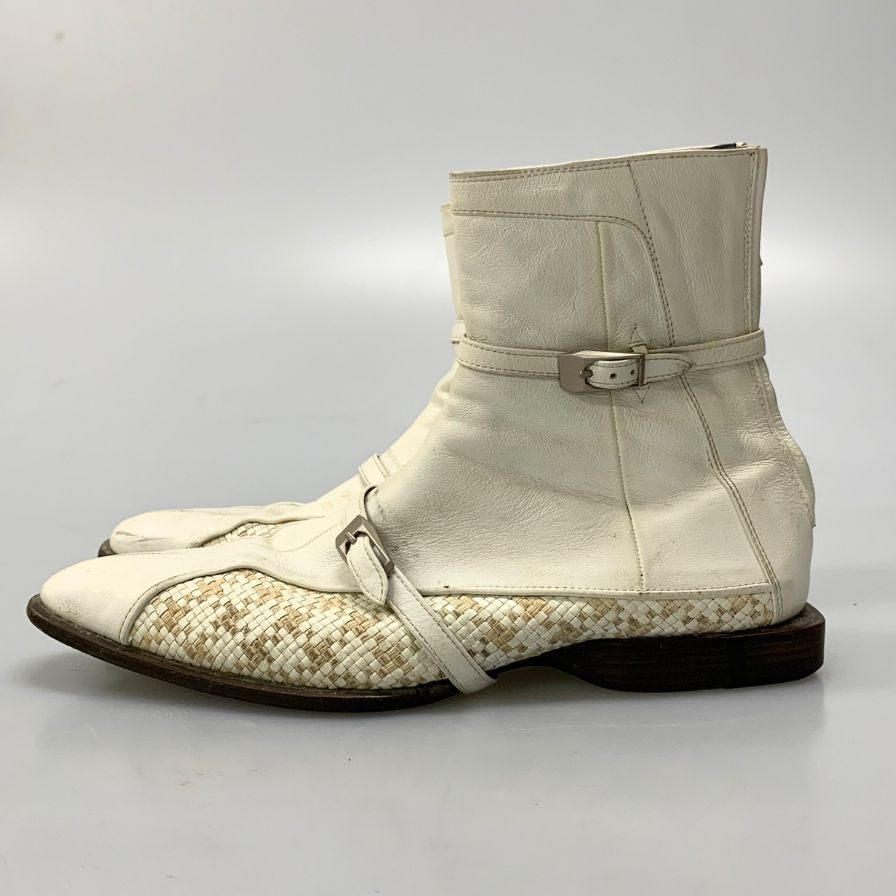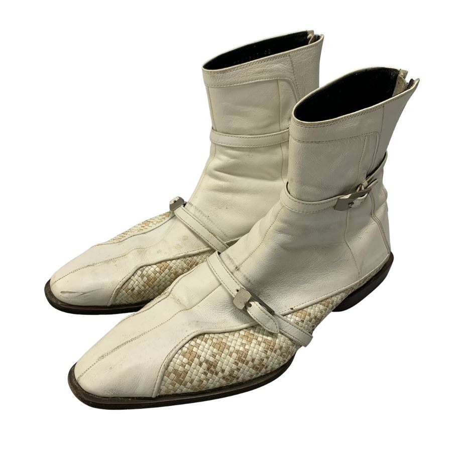 バッカス ブーツ ヒールジップ レザー 編み込み メンズ サイズ40 ホワイト BUCCHUS 約25.0cm【AFC46】