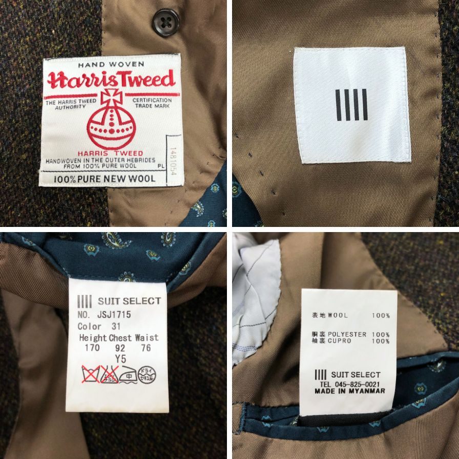 極美品◆スーツセレクト テーラードジャケット ハリスツイード ブラウン サイズY5 SUIT SELECT 【AFB42】