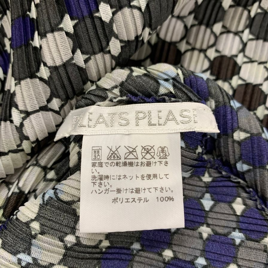 極美品◆イッセイミヤケ プリーツプリーズ ハイネック トップス レディース PP63-FT984 総柄 サイズ03 ISSEY MIYAKE PLEATS PLEASE 【AFB4】