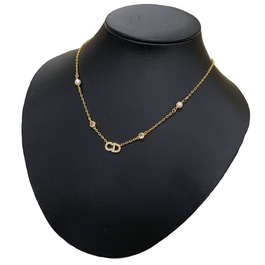 クリスチャンディオール ネックレス フェイクパール ラインストーン CDロゴ ゴールド レディース Christian Dior【AFI13】