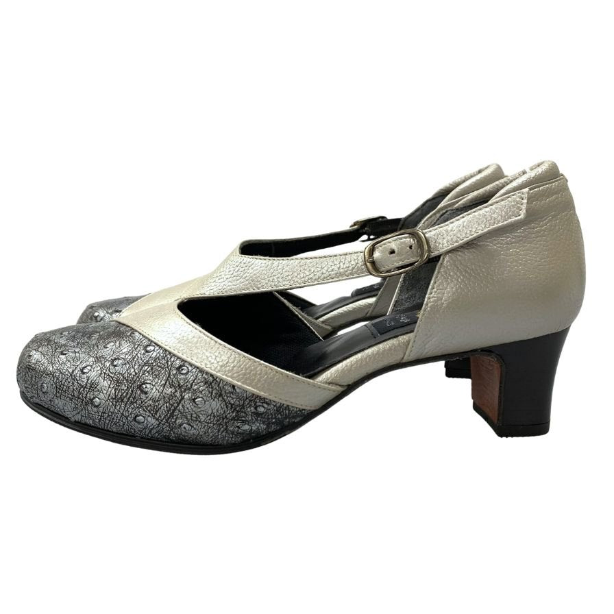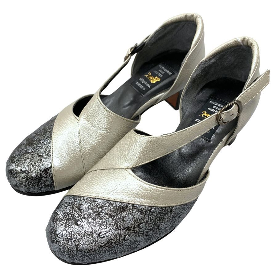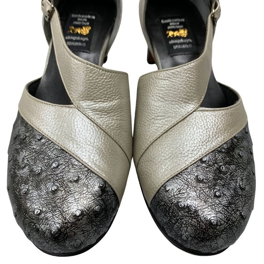 新宿屋 レザーパンプス オーストリッチ 4640-865 シルバー 22.5cm レディース shinjukuya 約22.5cm【7-16】