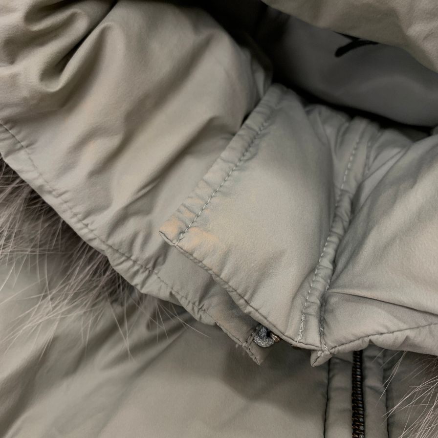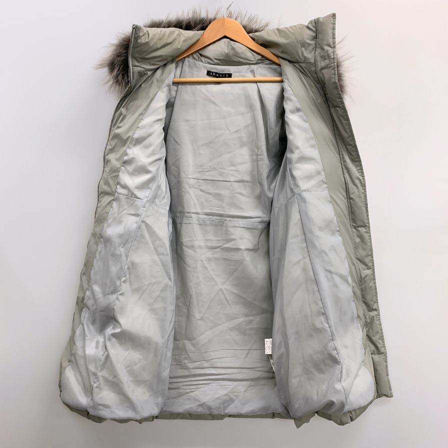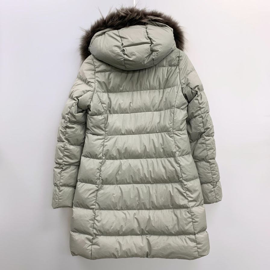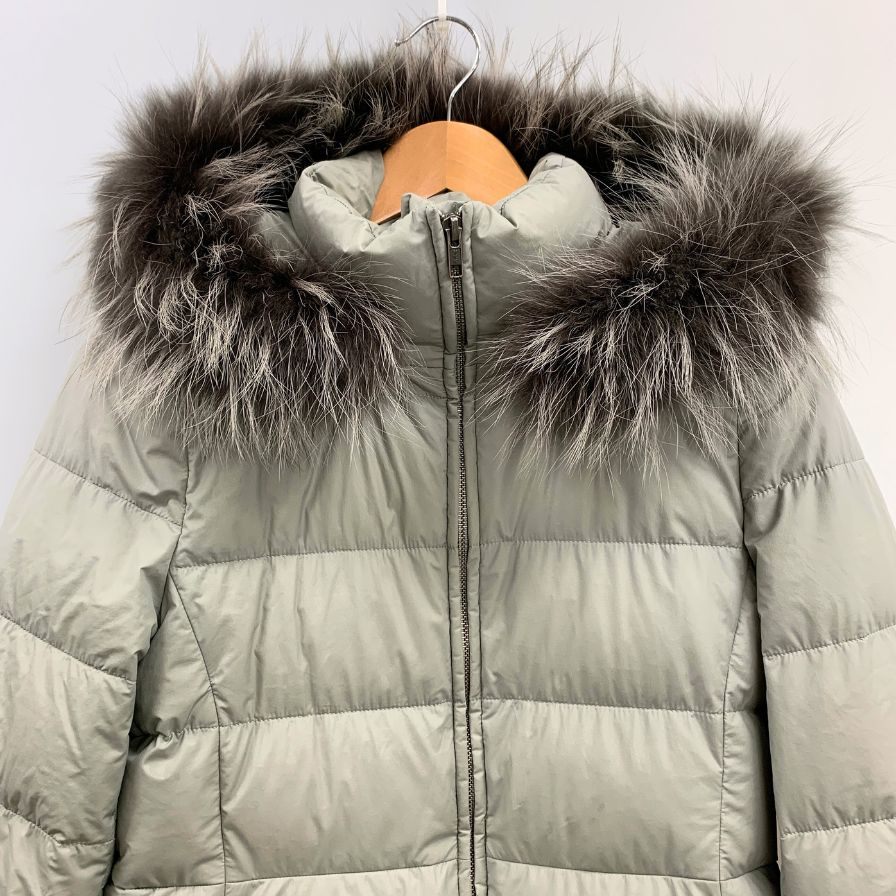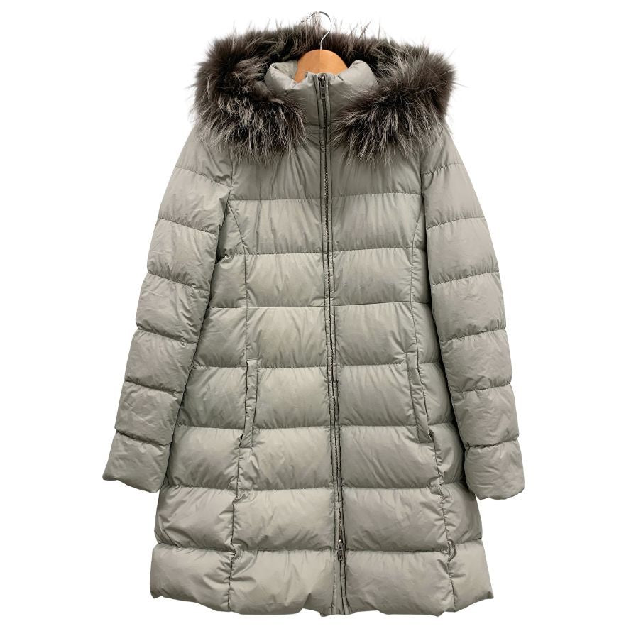 中古◆セオリー ダウンコート ハーフ丈 Aライン ラクーン ファー 本毛皮 グレー レディース サイズP Theory 【AFF23】