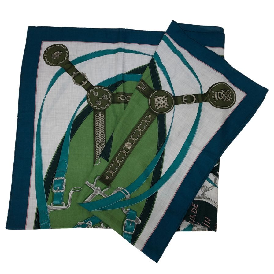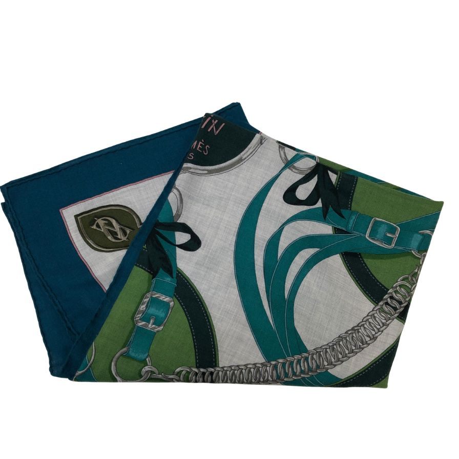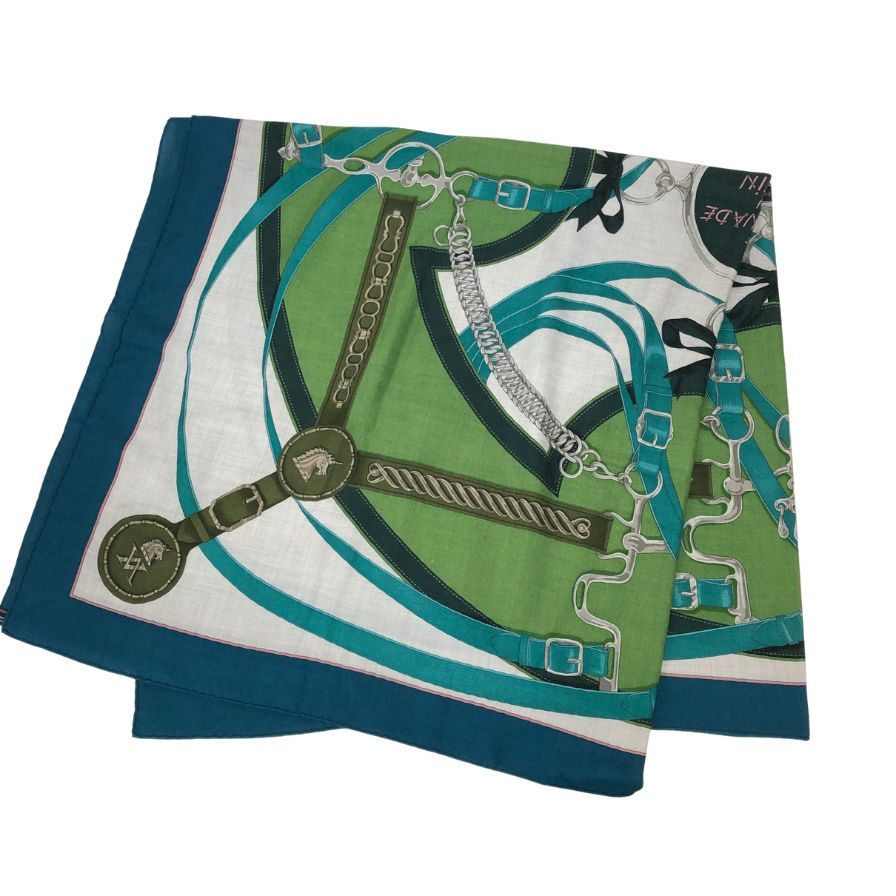 エルメス ストール カレジェアン 140 LA PROMENADE DU MATIN 朝の散歩 カシミヤ×シルク ブルーグリーン レディース HERMES【AFI29】