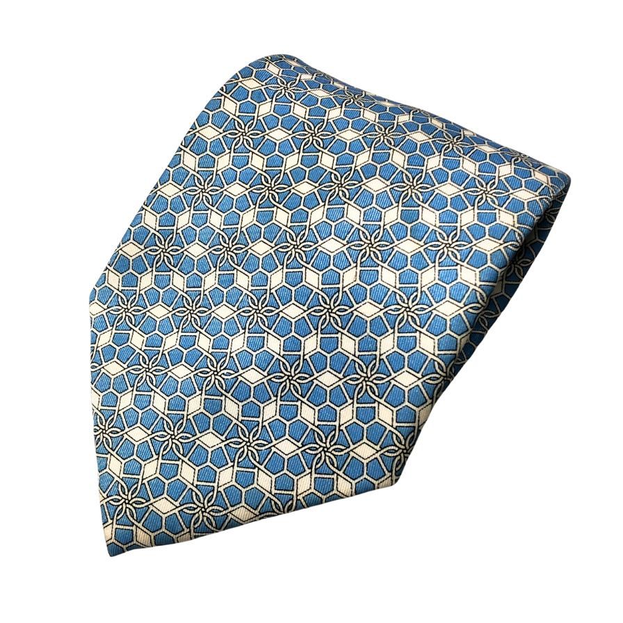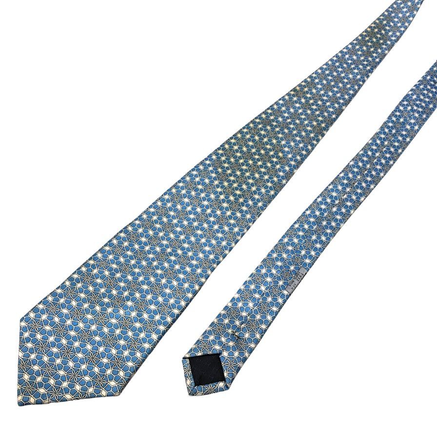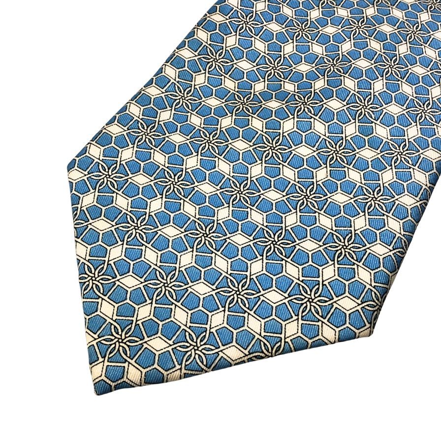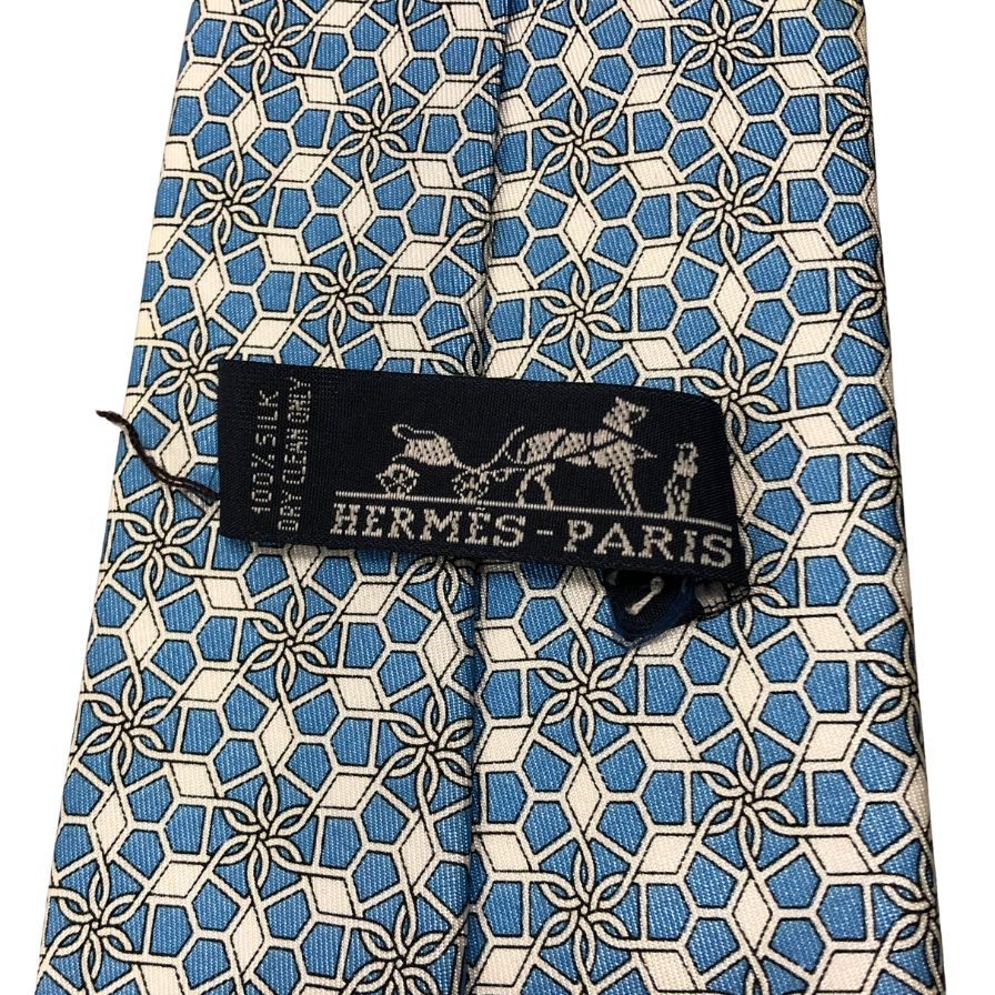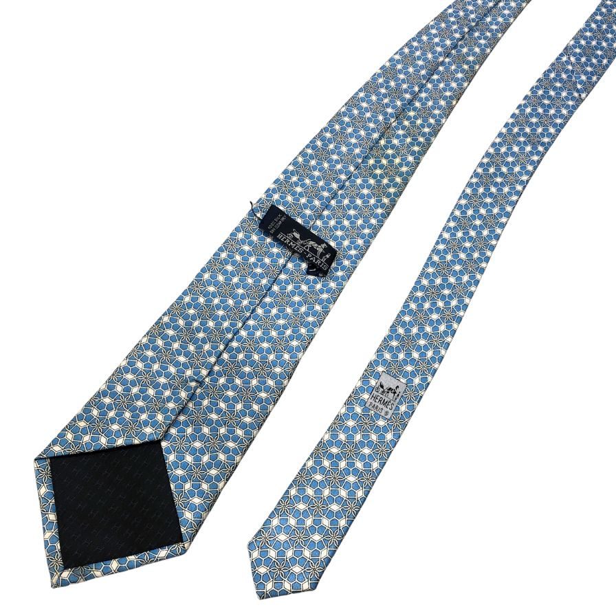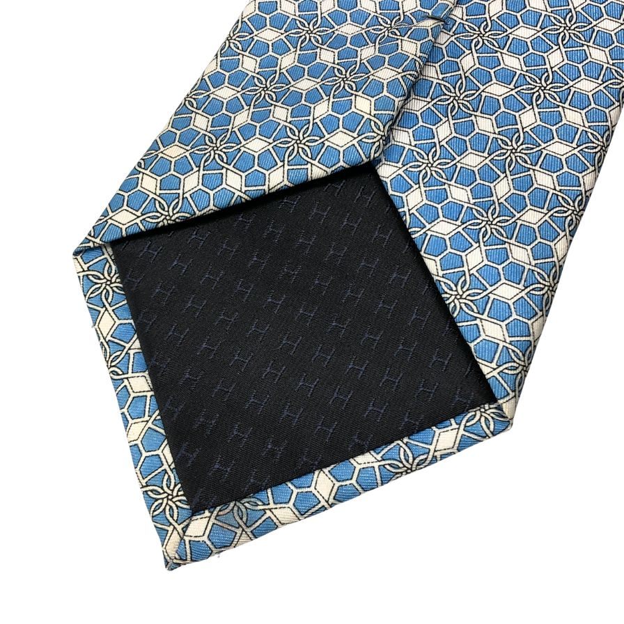 エルメス 総柄ネクタイ シルク100% 水色系 Hermes【AFI13】