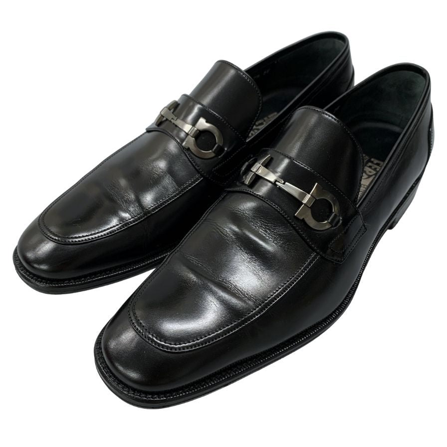 サルヴァトーレフェラガモ ローファー ガンチーニ ビット レザー ブラック メンズ サイズ7.5 Salvatore Ferragamo 約26.0cm【AFD5】