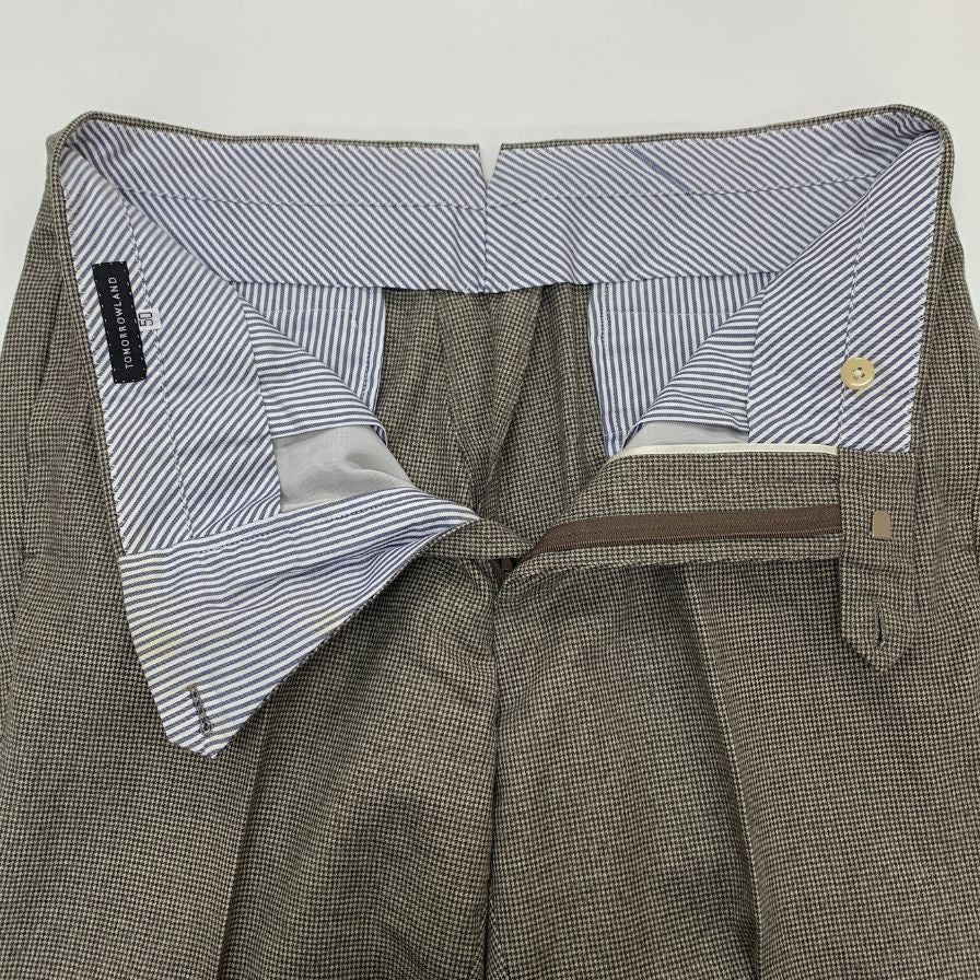 トゥモローランド ツイード ノープリーツチェック パンツ ウール100% メンズ サイズ50 ブラウン TOMORROWLAND 【AFB44】