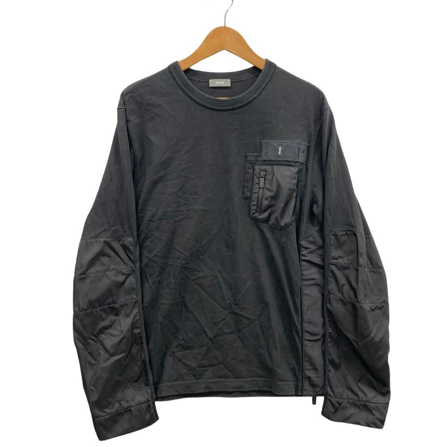 美品◆ディオール×サカイ 21AW スウェットシャツ サイドスリット ナイロン切替 サイズL メンズ ブラック DIOR SACAI 【AFB11】