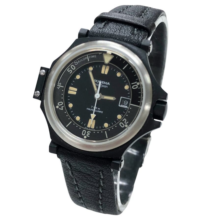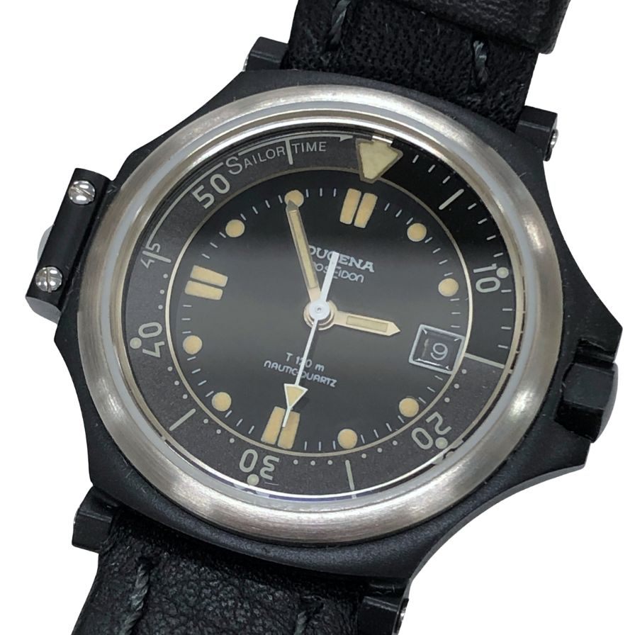 ポセイドン 腕時計 クオーツ デイト DUGENA T120M メンズ ブラック POSEIDON【AFI9】