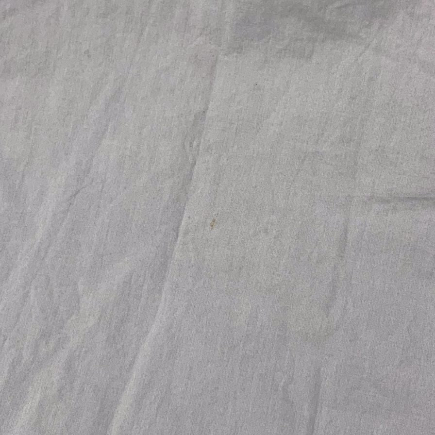 首周り擦れ・黄ばみ、前身頃弱シミ、袖口スレが見られます。 |