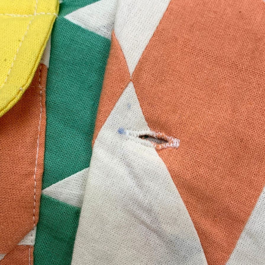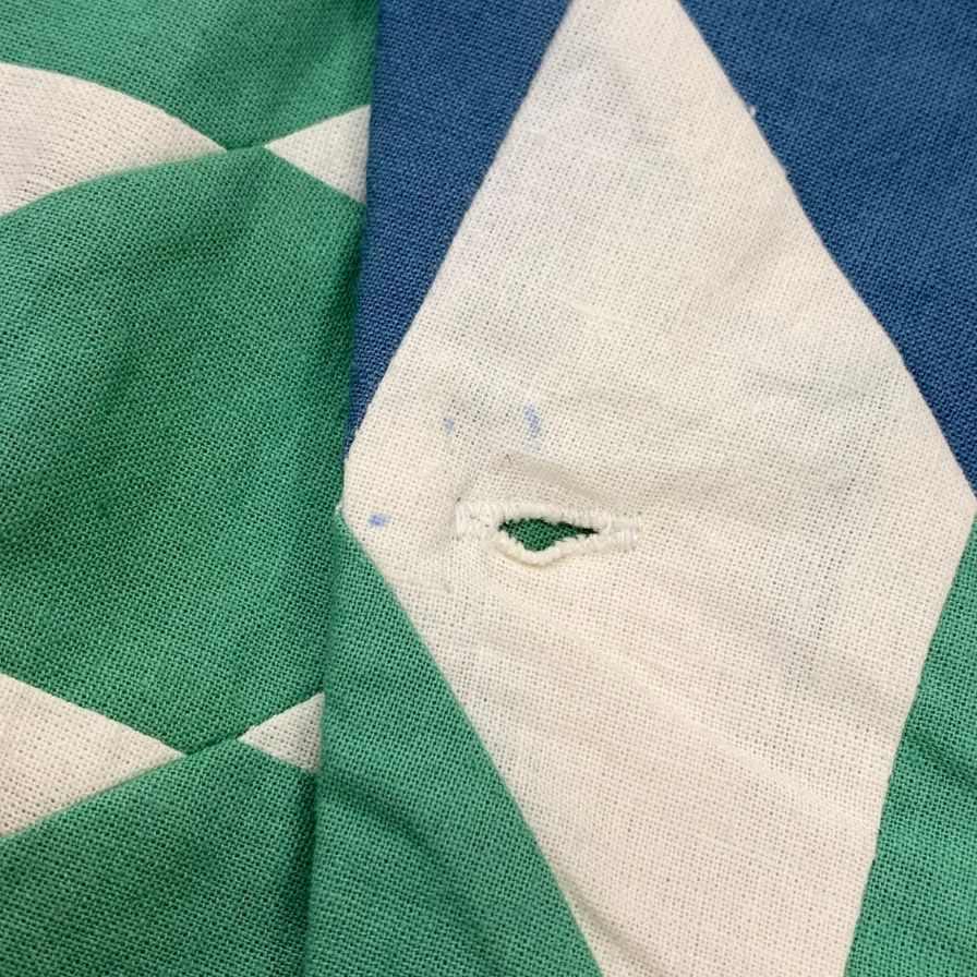 ブランドタグほつれ、表面にスレ、首周りやボタンホール・後ろ身頃にシミ汚れが数箇所見られます。 |