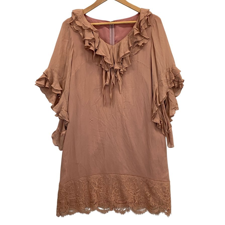 中古◆グレースコンチネンタル ワンピース フリル デザイン シルク チュニック ピンク レディース サイズ36 GRACE CONTINENTAL 【AFB5】