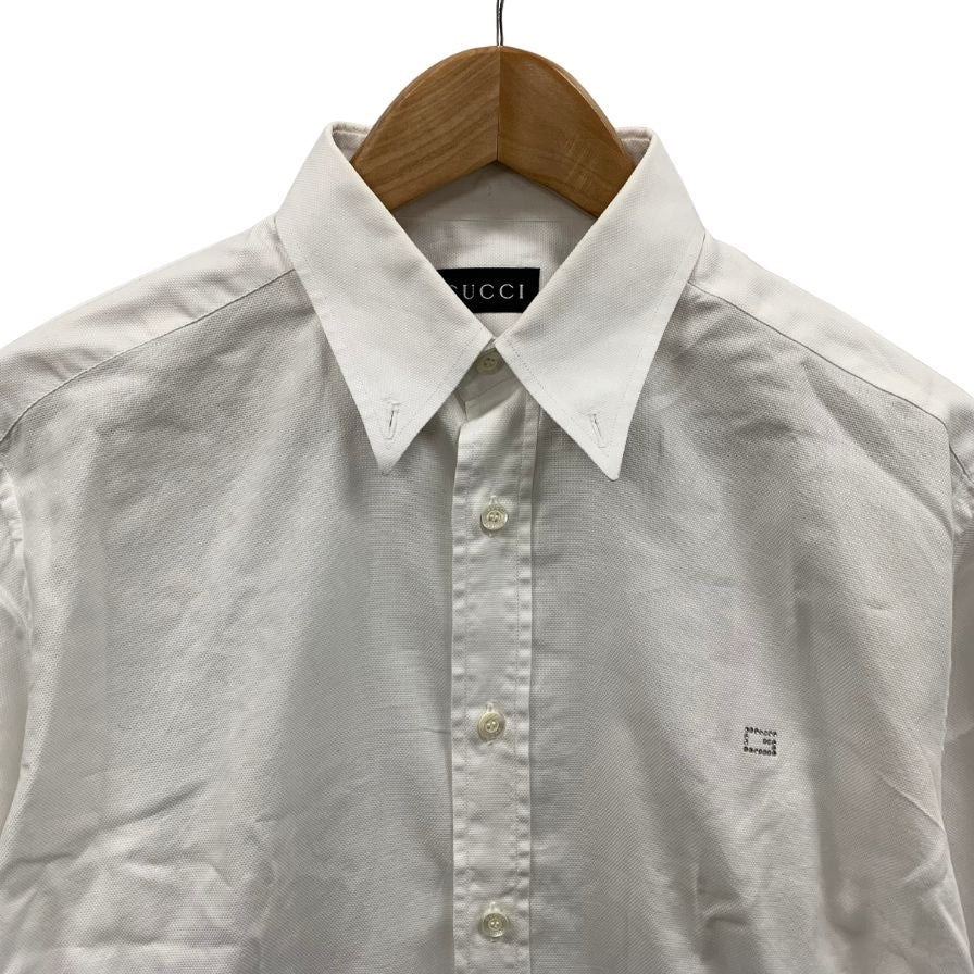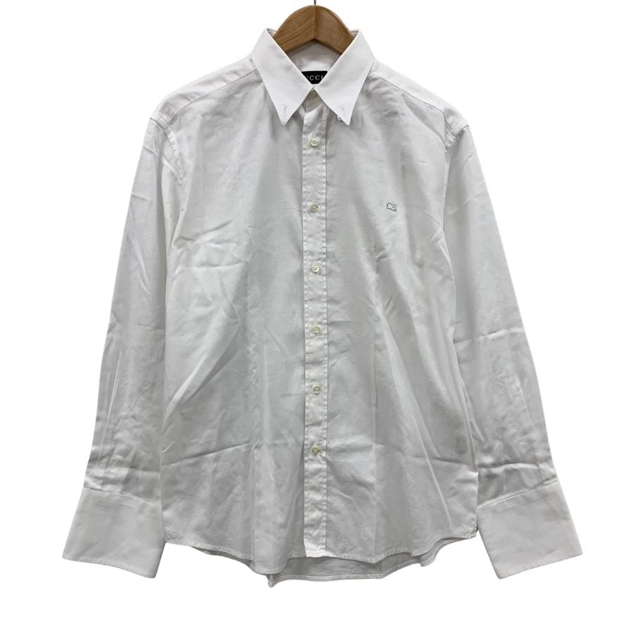 極美品◆グッチ 長袖シャツ コットン 胸ロゴ ホワイト メンズ サイズ40 GUCCI 【AFB43】