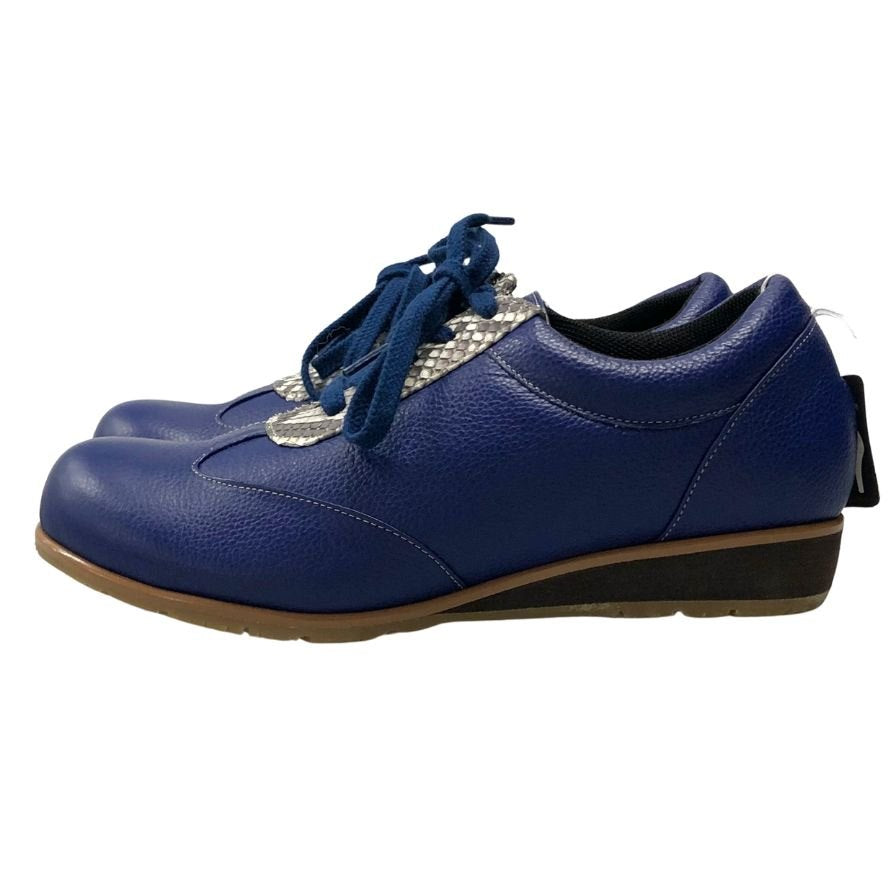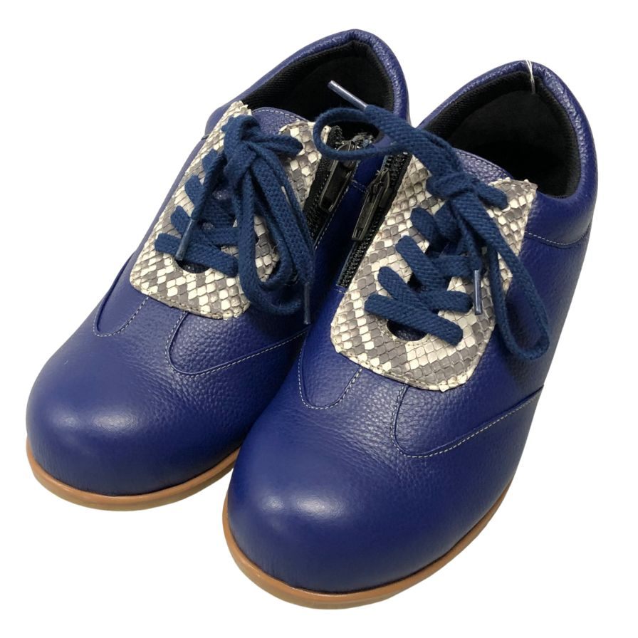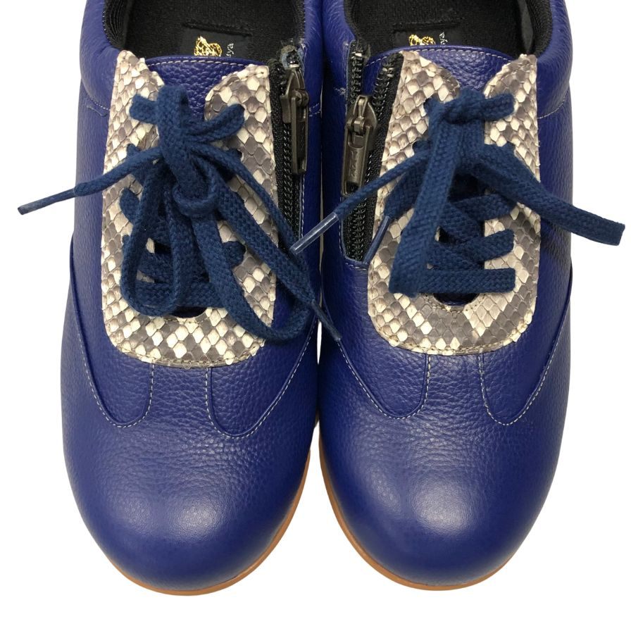 新宿屋 レザースニーカー レザー×パイソン 0250-545 ブルー 22.5cm レディース shinjukuya 約22.5cm【7-5】