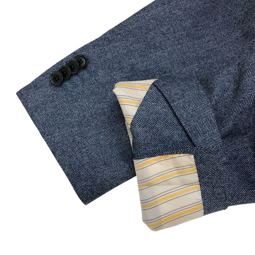 極美品◆フランコプリンツィバァリー テーラードジャケット 3B シングル ヘリンボーン ブルー系 サイズ48 FRANCO PRINZIVALLI 【AFB42】