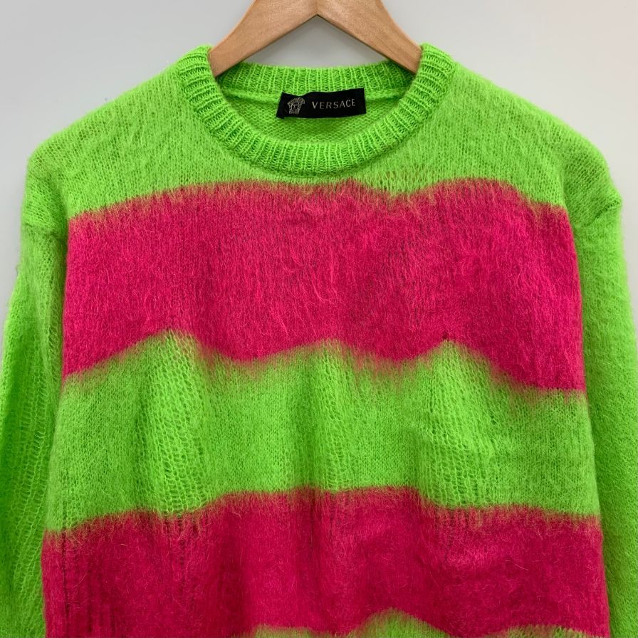 極美品◆ジャンニ ヴェルサーチ セーター モヘア混 ネオンカラー レディース サイズ42 グリーン GIANNI VERSACE 【AFB12】