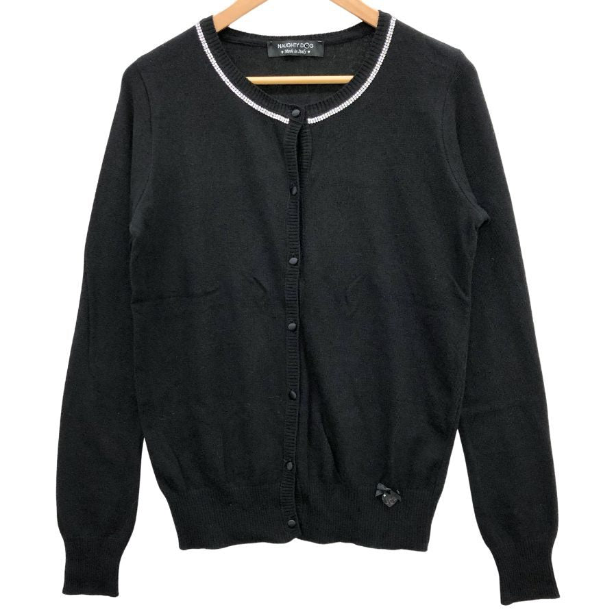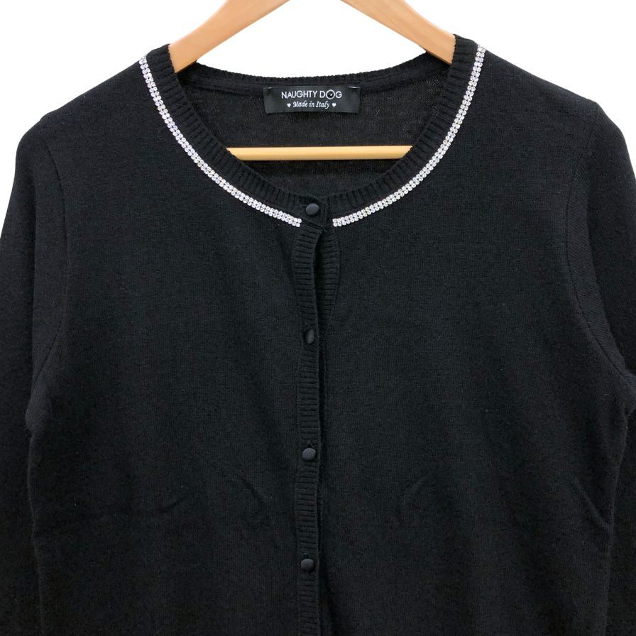 美品◆シェルビーノストリート レース&ベロアあしらい モヘア混 カーディガン イタリア製 レディース サイズ44 ブラック Scervino Street 【AFB24】