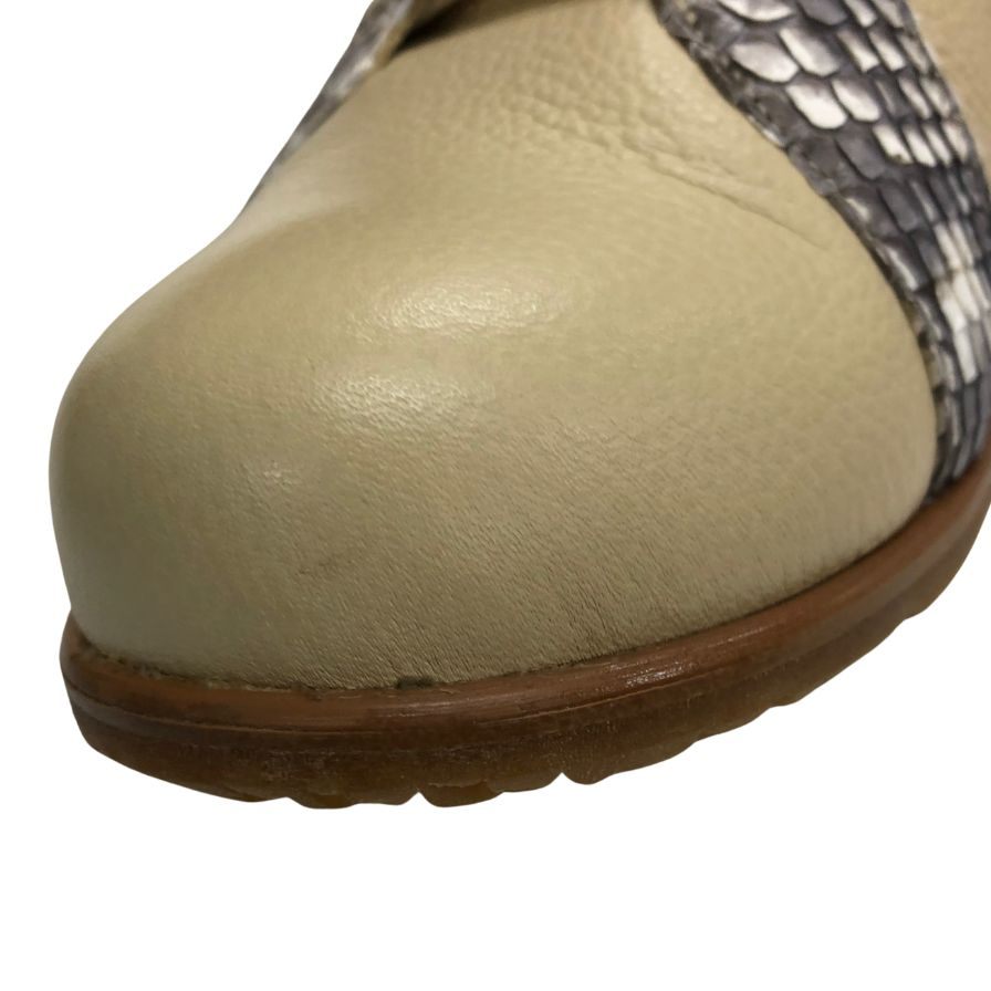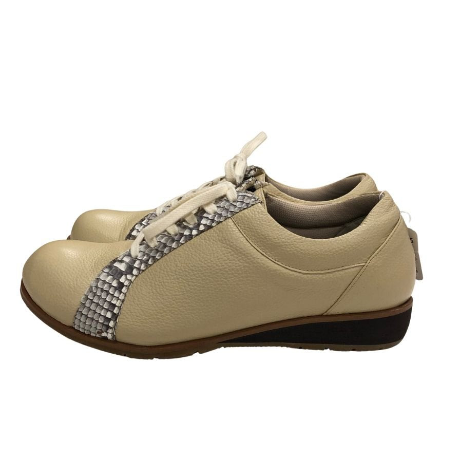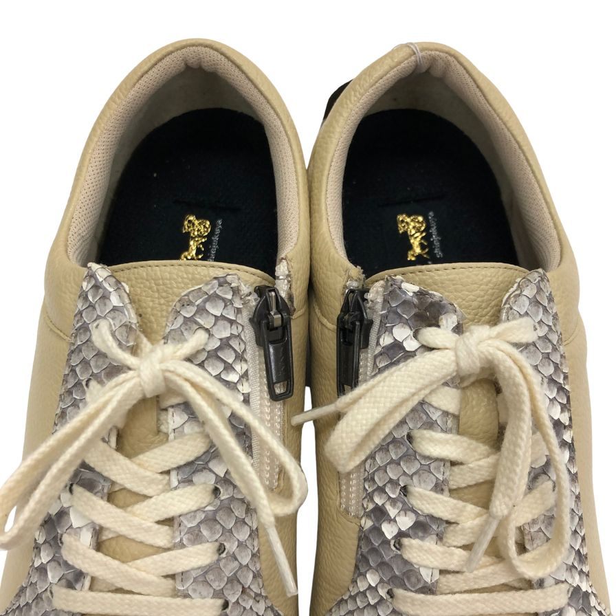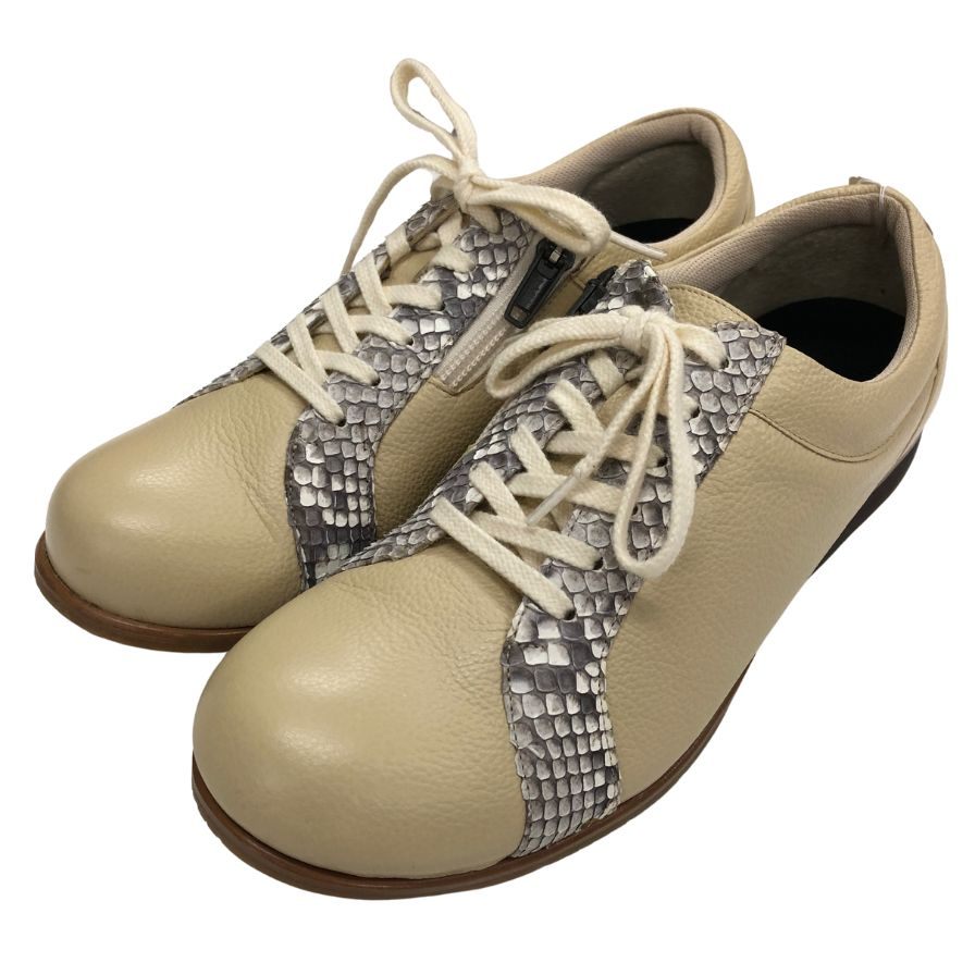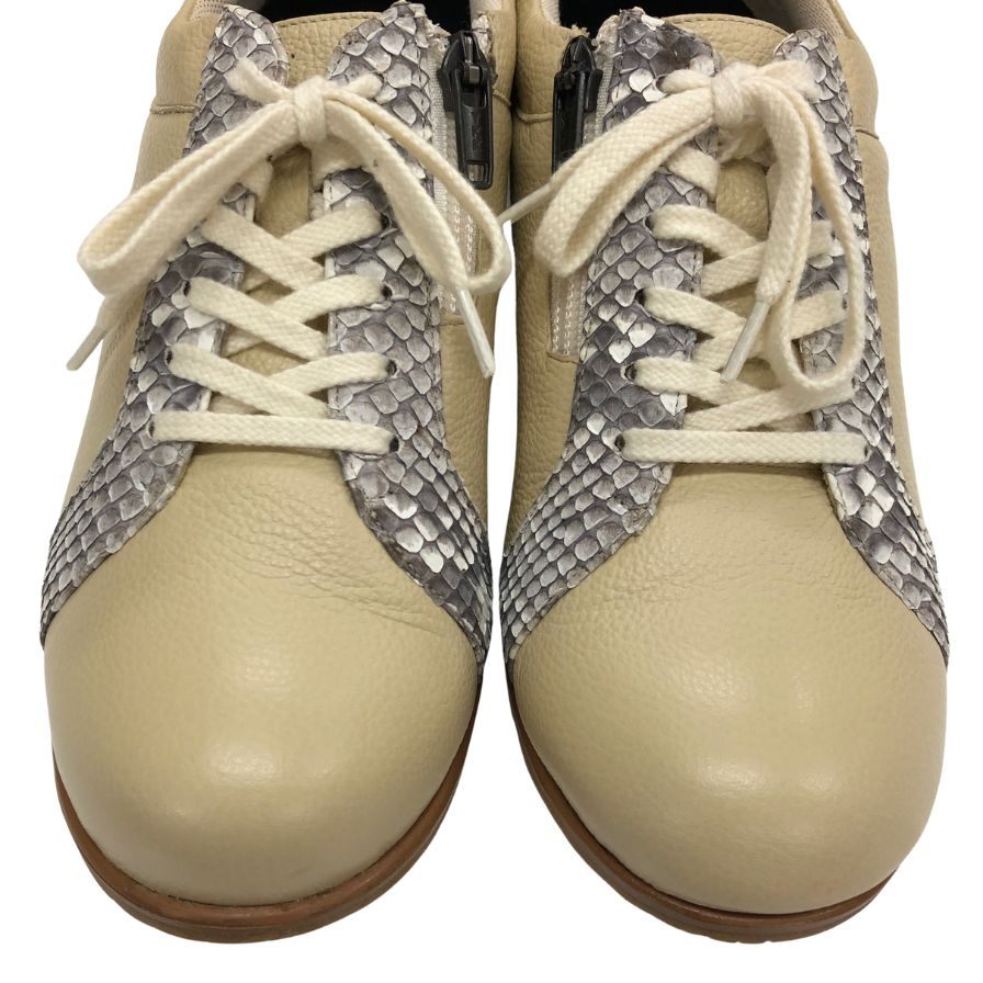 新宿屋 レザースニーカー レザー×パイソン 0251-545 23.5cm レディース ベージュ shinjukuya 約23.5cm【7-19】