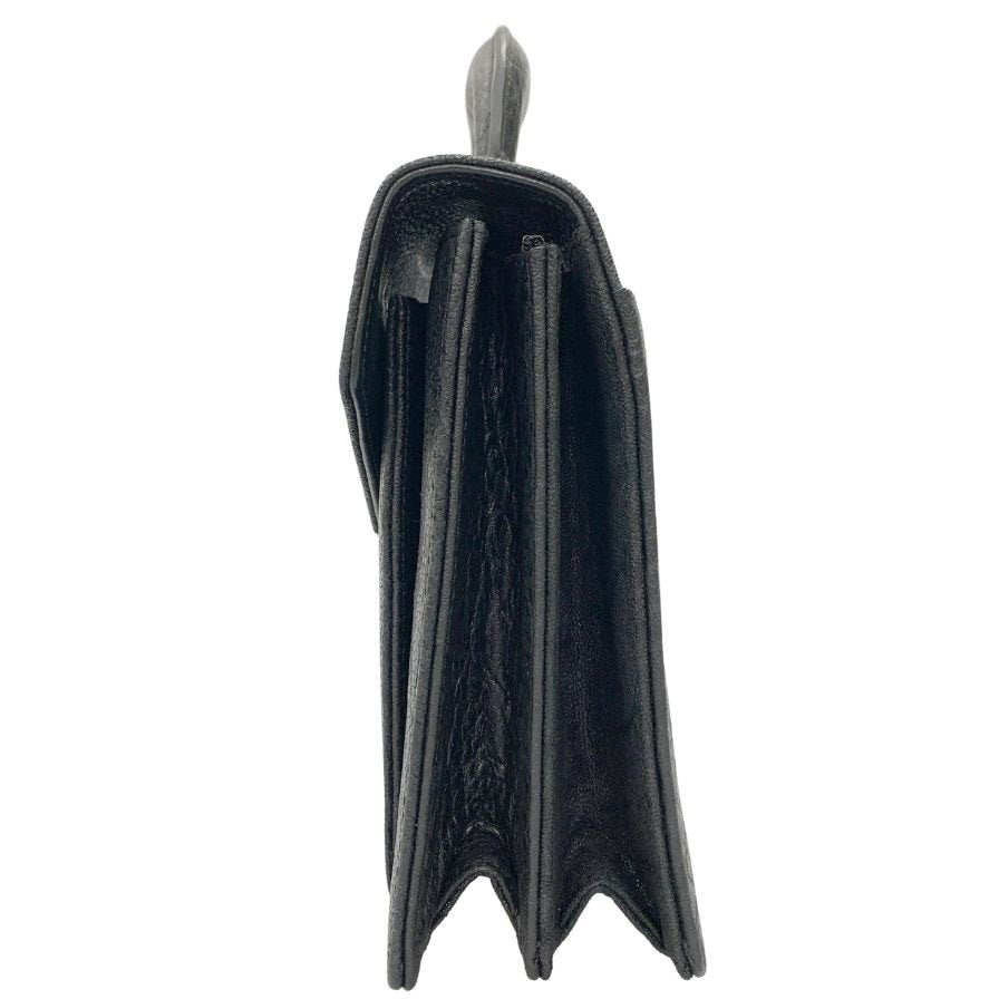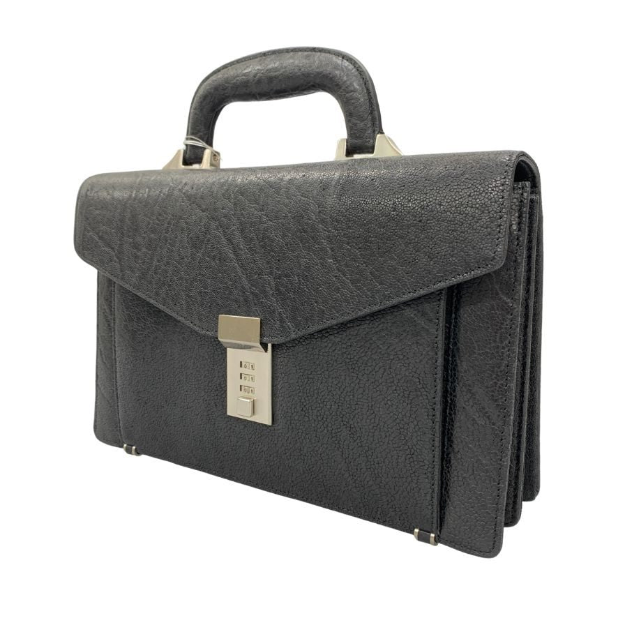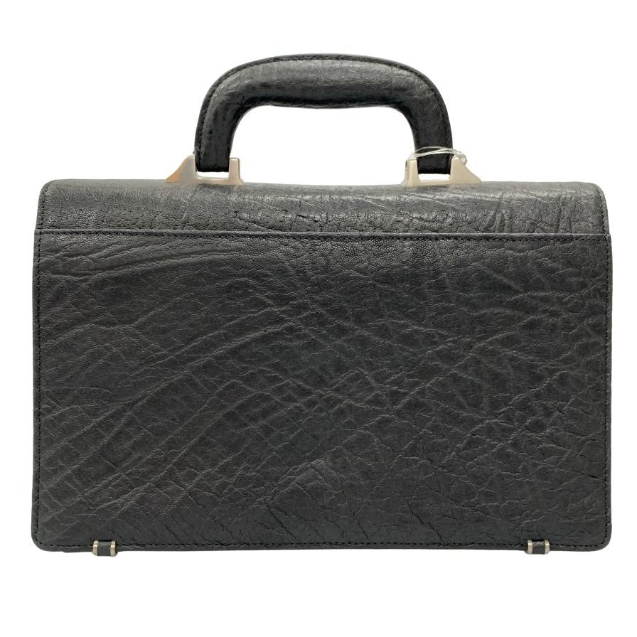 ノーブランド ハンドバッグ エレファント レザー 象 本革 ブラック シルバー金具【AFE3】