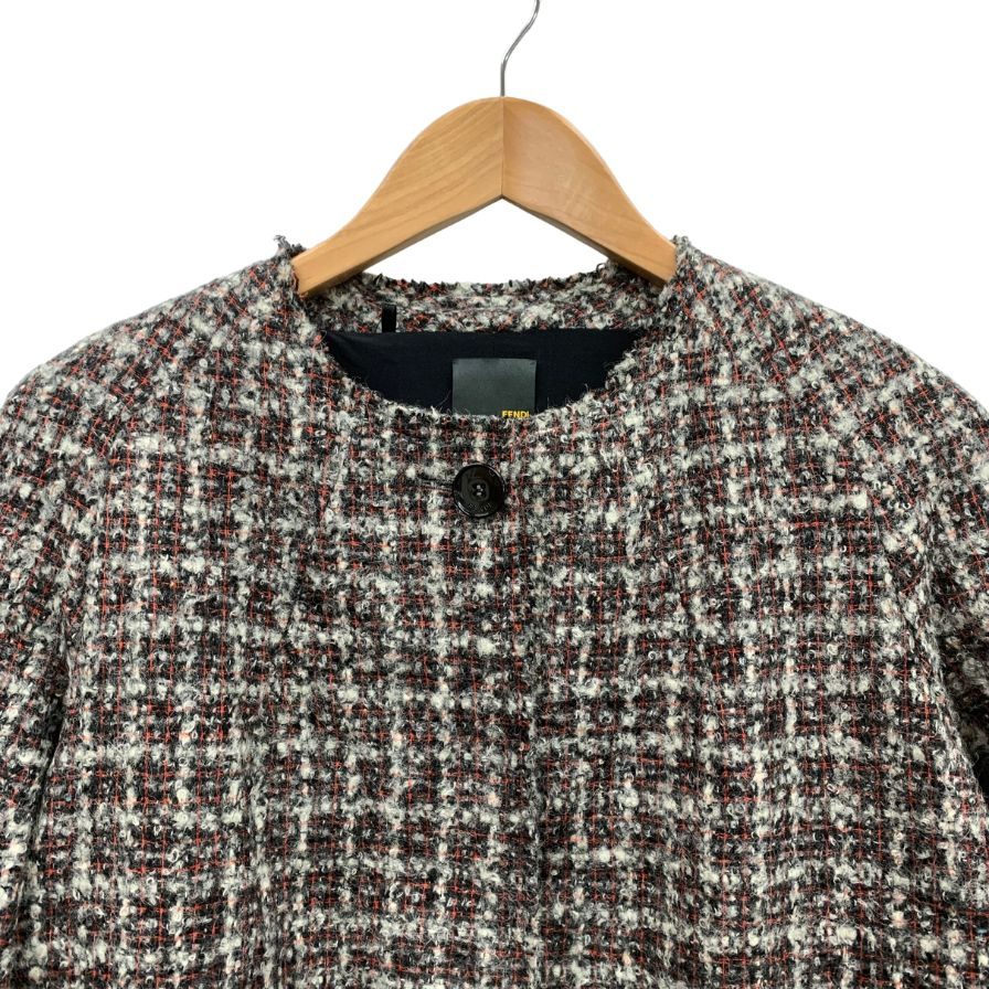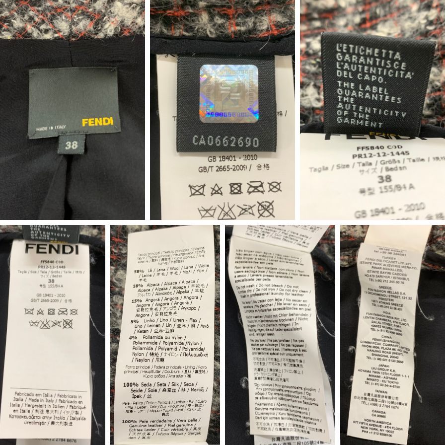 美品◆フェンディ レザーパネル ツイード コート アンゴラ レディース サイズ38 FF5840 FENDI 【AFA24】