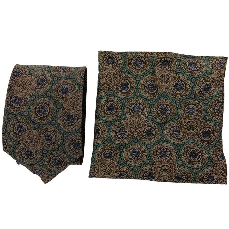 クリスチャン ディオール 総柄 ネクタイ&チーフセット ブラウン メンズ Christian Dior【AFI22】