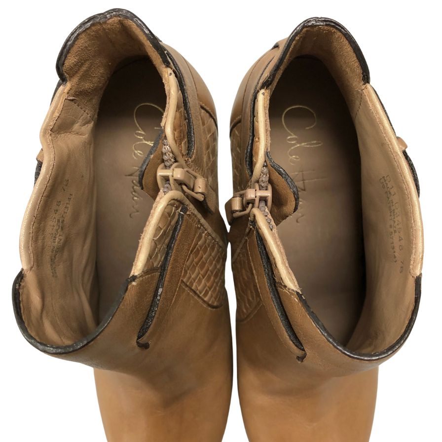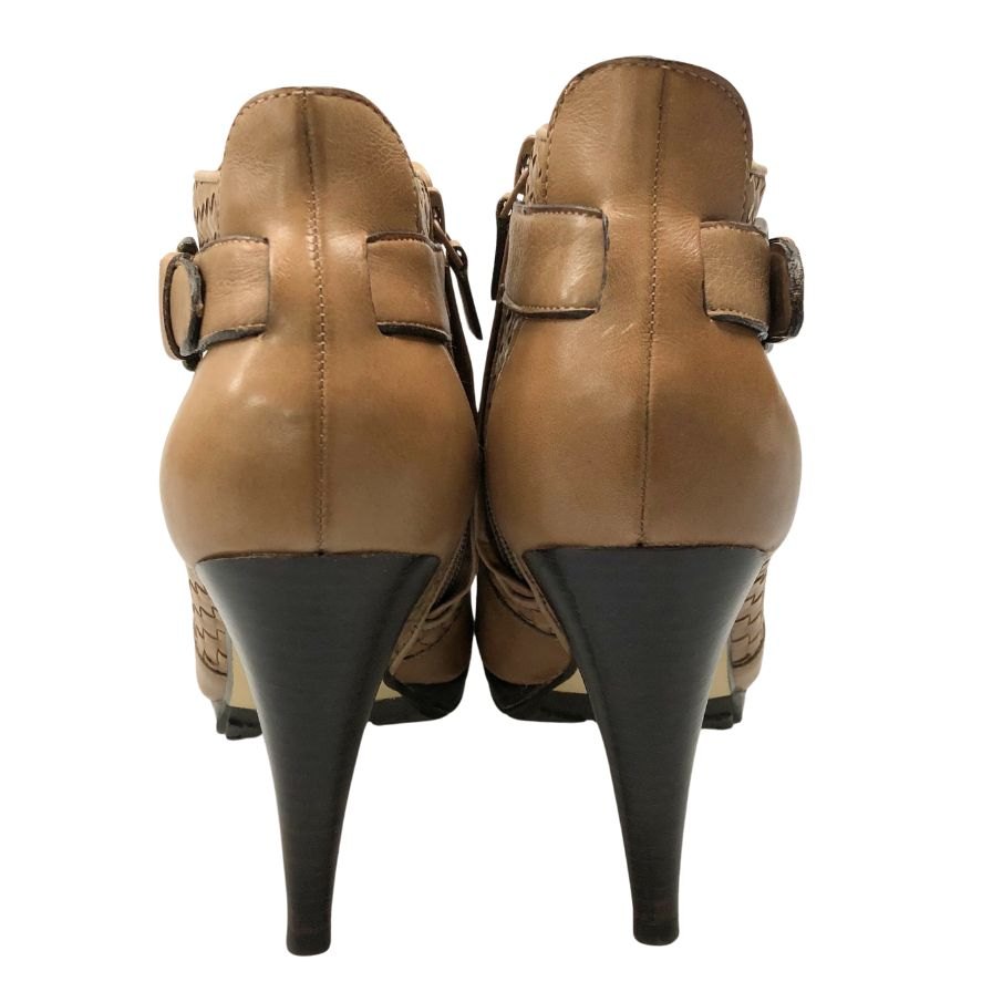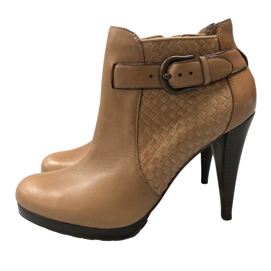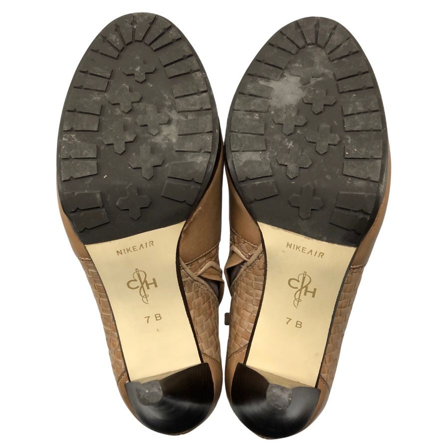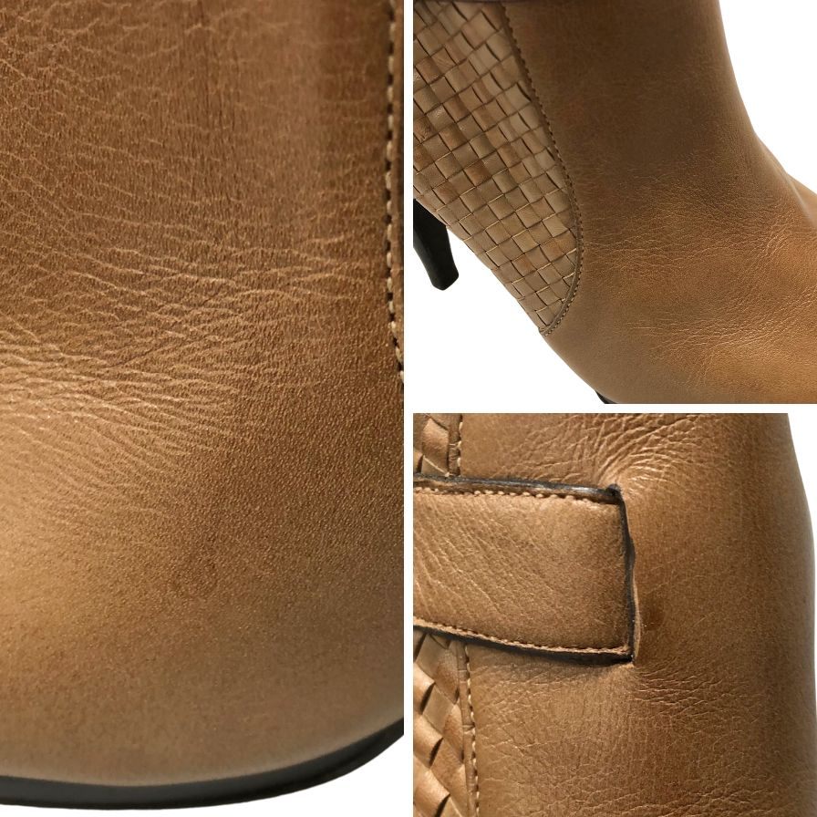 ナイキ エアー×コールハーン ショートヒールブーツ サイドジップ 編み込み ブラウン レディース サイズ7B NIKE AIR×COLE HAAN 約24.5cm【AFD1】